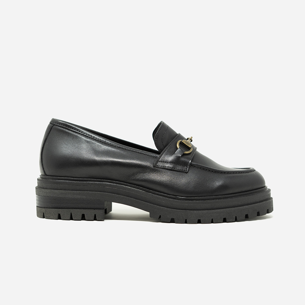 Attili donna in vitello nero, fondo carrarmato e morsetto dorato ... Un look in linea con le ultime tendenze della moda 21-22. Esclusiva la lavorazione artigianale