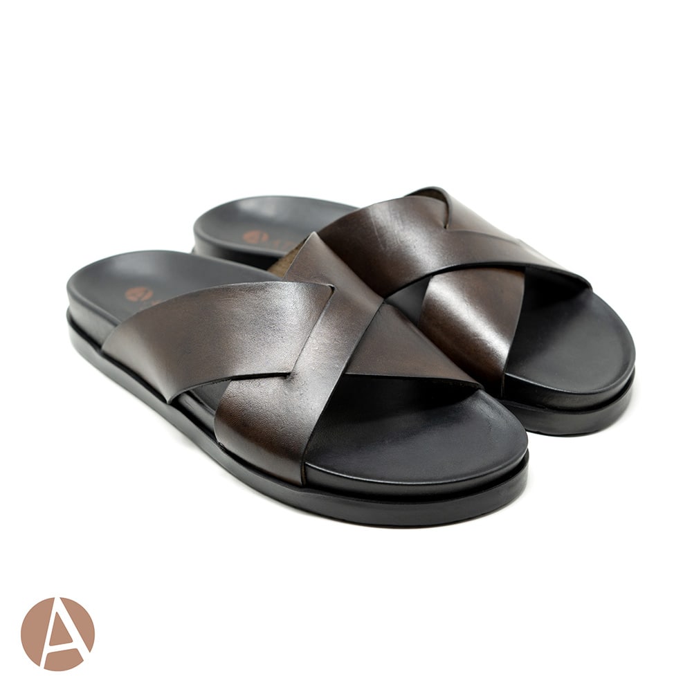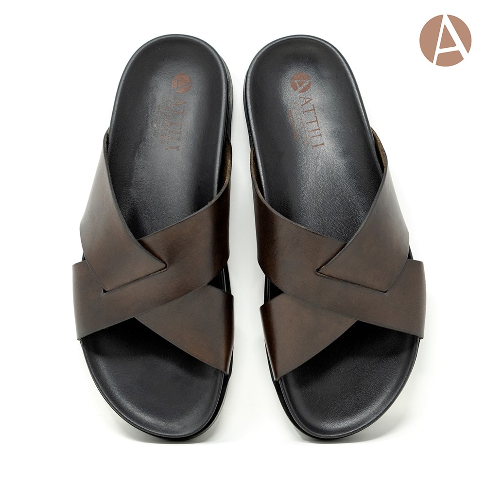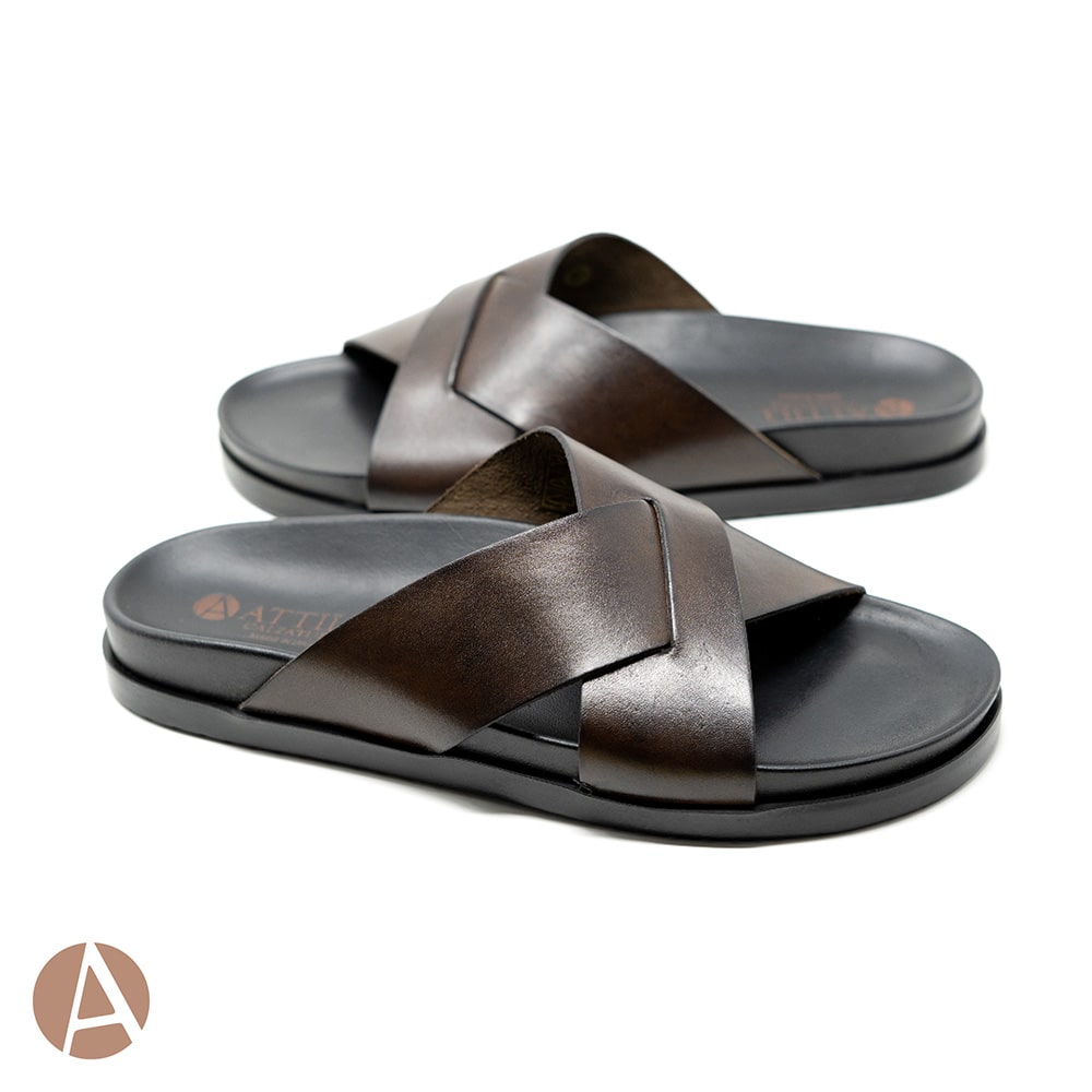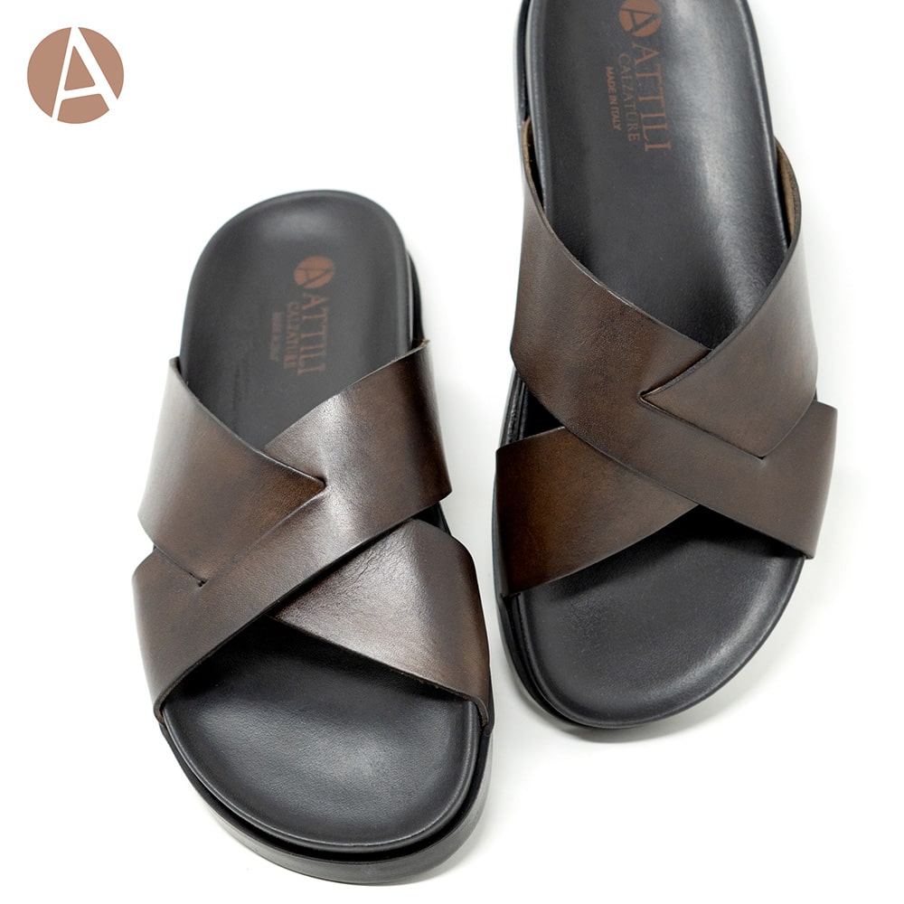 Ciabatta infradito uomo Attili Calzature in vera pelle colore marrone e sottopiede in cuoio. Eccezionale comfort. Realizzati artigianalmente e interamente MADE IN ITALY.