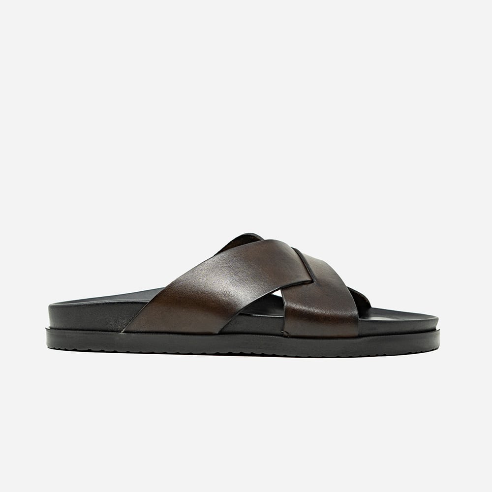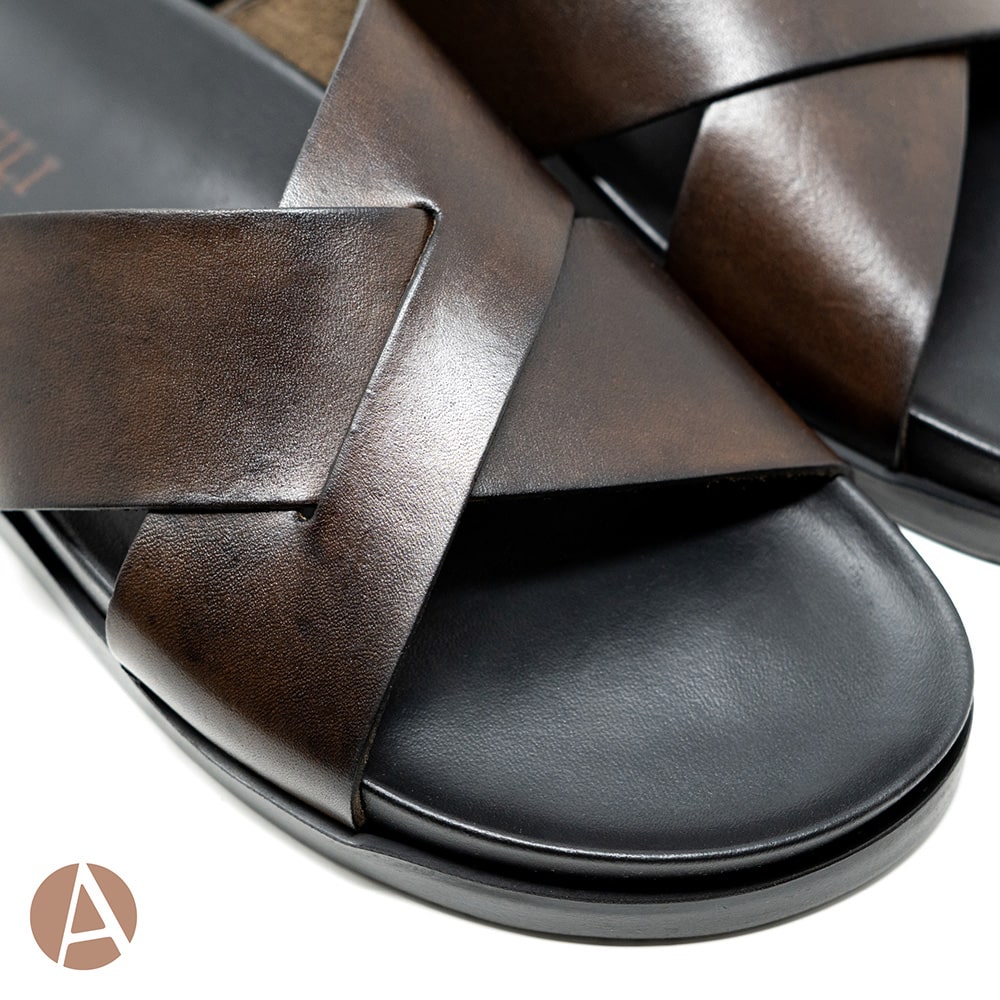 Sandalo uomo Attili Calzature in pelle T. di Moro con due fasce e sottopiede anatomico. Eccezionale comfort. Realizzate artigianalmente e interamente MADE IN ITALY.