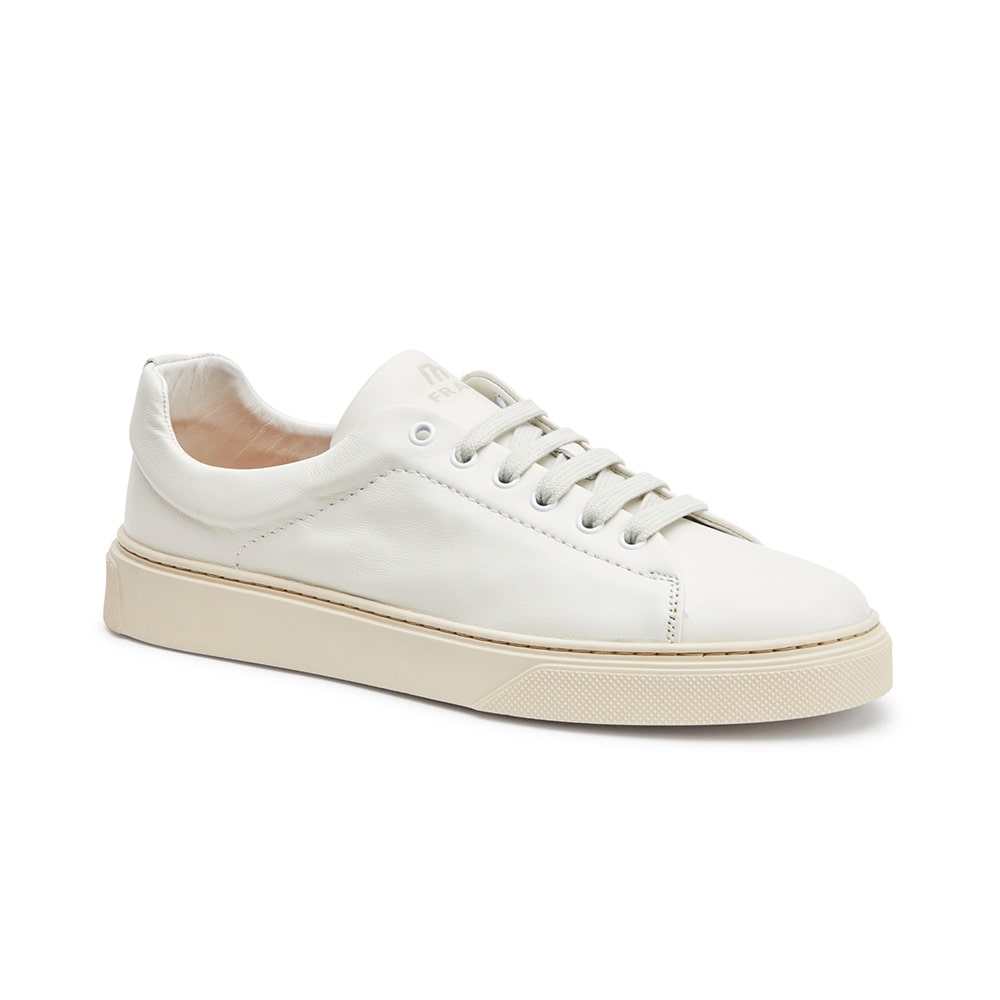 Sneakers uomo Frau in pelle di colore bianca dalle linee essenziali. Comoda calzatura dallo stile sportivo e casual. MADE IN ITALY.