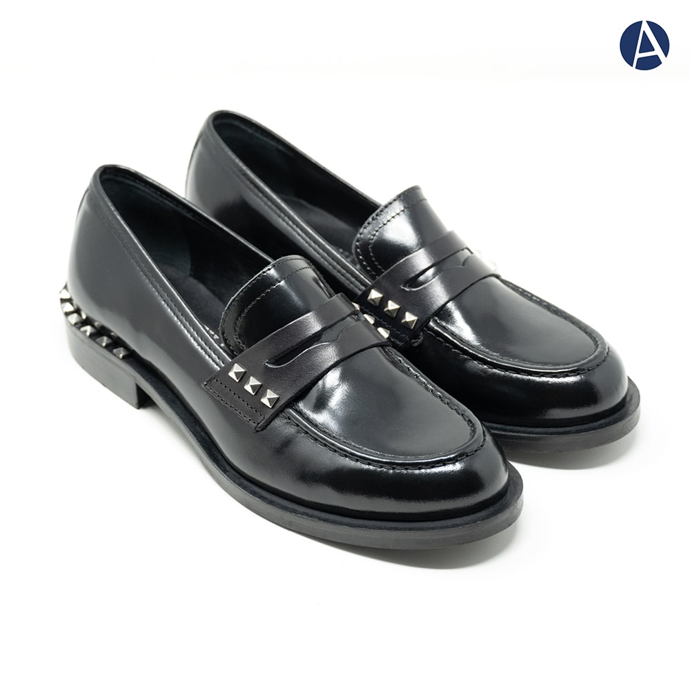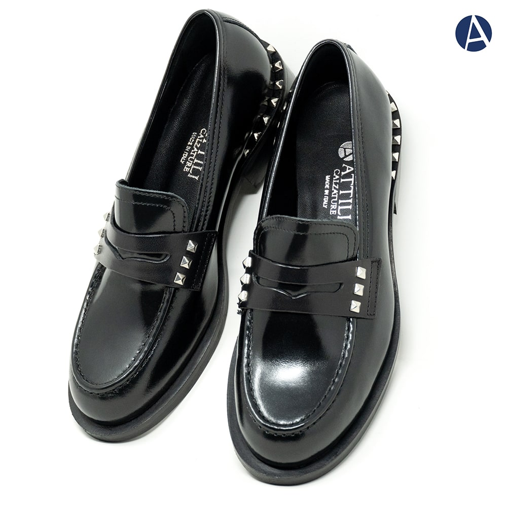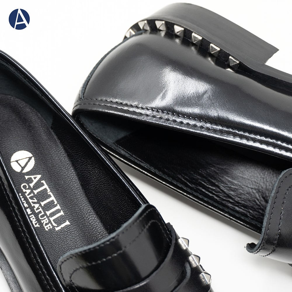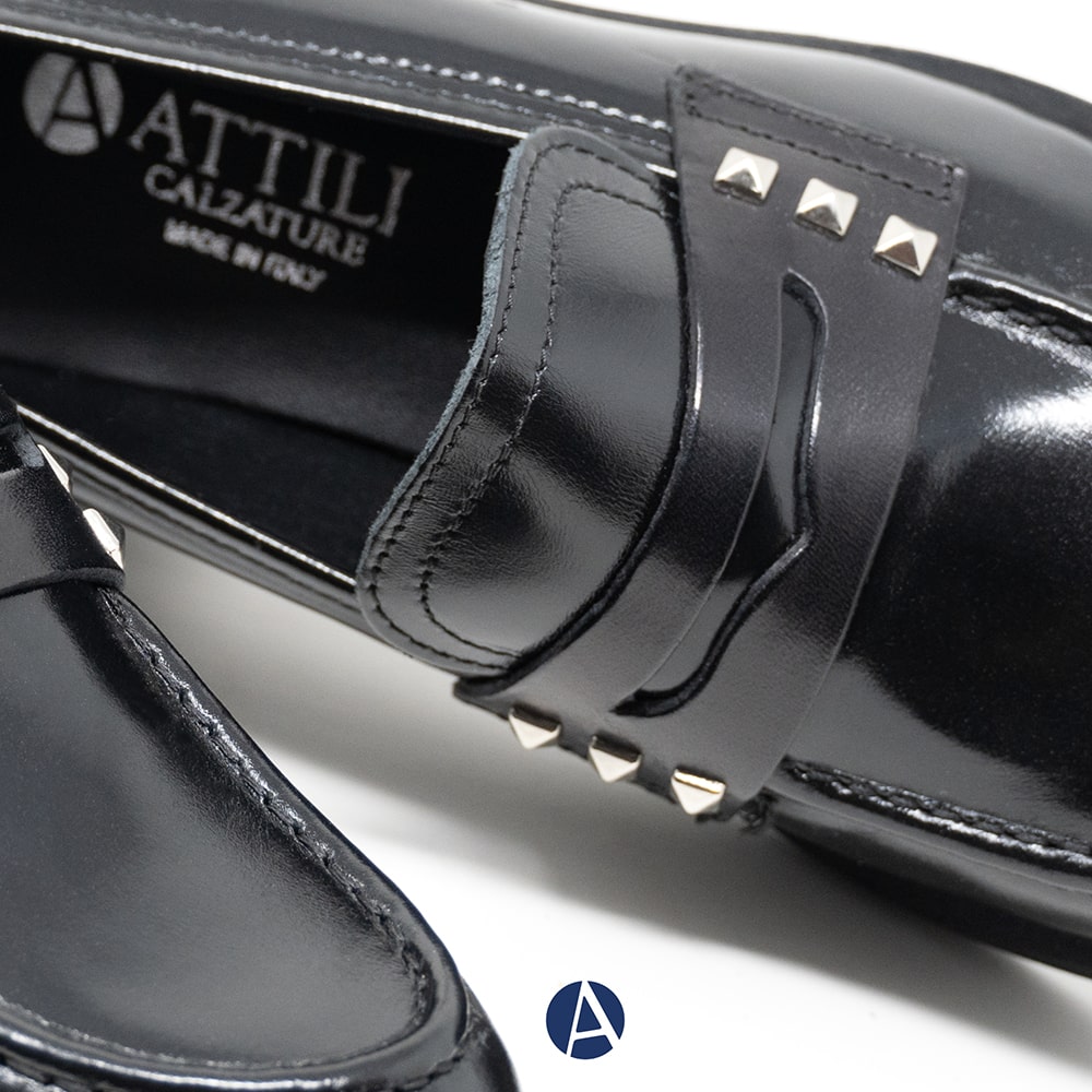 Mocassino Attili donna in pelle abrasivato di colore nero e fondo gomma a carrarmato. Comodi e dal look in linea con le ultime tendenze. Prodotto artigianale interamente MADE IN ITALY.