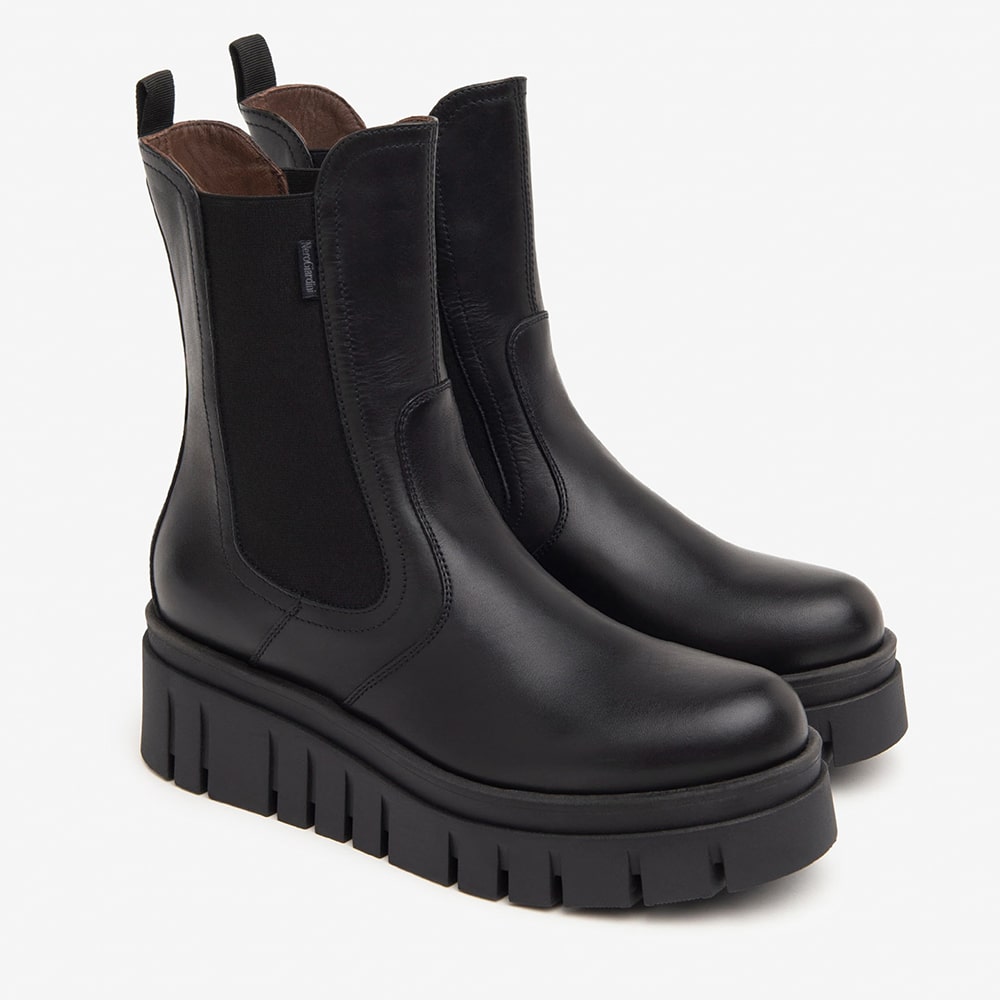 Stivaletti chelsea donna NeroGiardini in pelle di colore nero, con doppio elastico laterale, tacco a blocco 3,5 cm. Calzature donna MADE IN ITALY realizzate con materiali di alta qualità.
