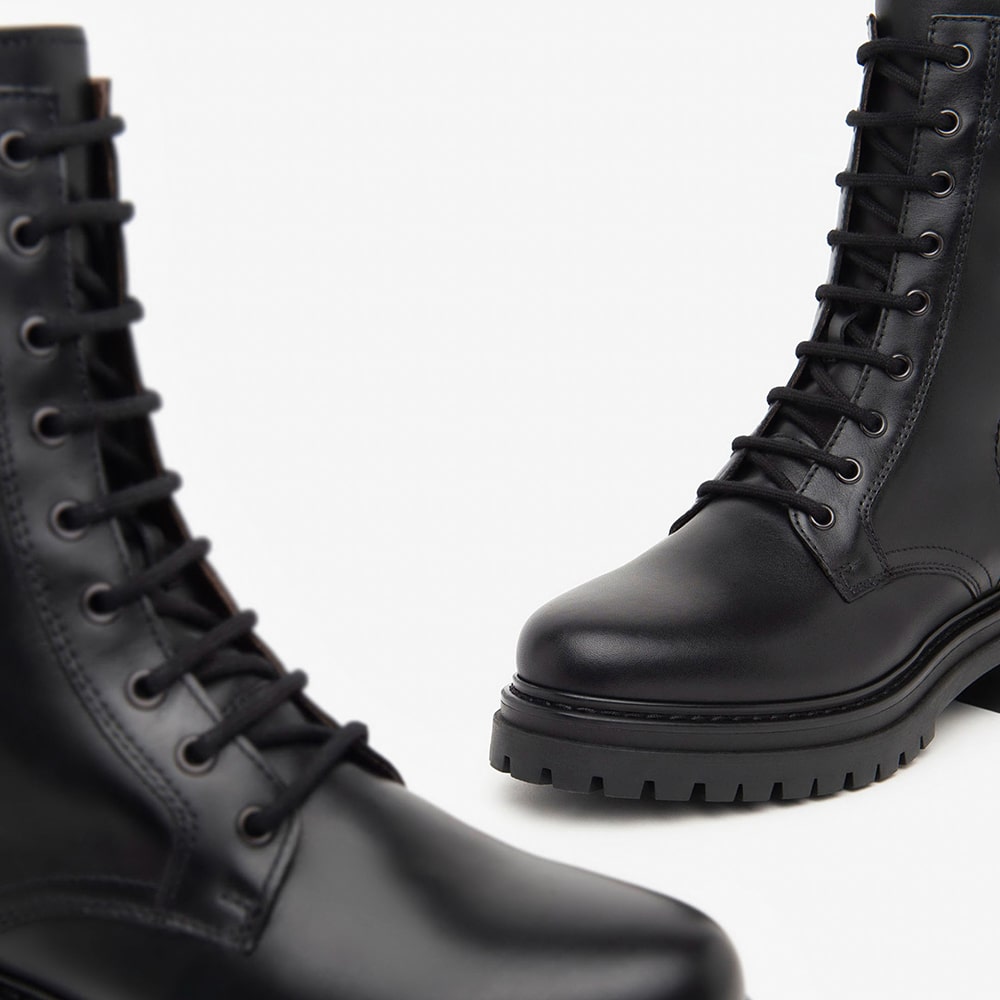 Anfibi donna NeroGiardini in morbida pelle nera con lacci, fondo carrarmato, accessorio in tinta brandizzato e zip laterale per rendere la calzata ancora più comoda. Tacco a blocco 3 cm. Stivaletti donna bellissimi che non possono mancare nel tuo guardaroba! Calzatura MADE IN ITALY realizzata con materiali di alta qualità