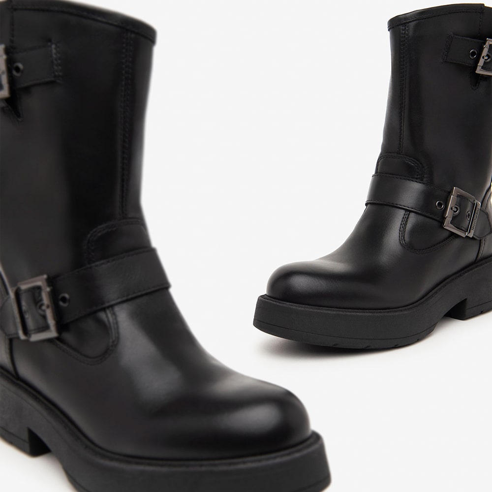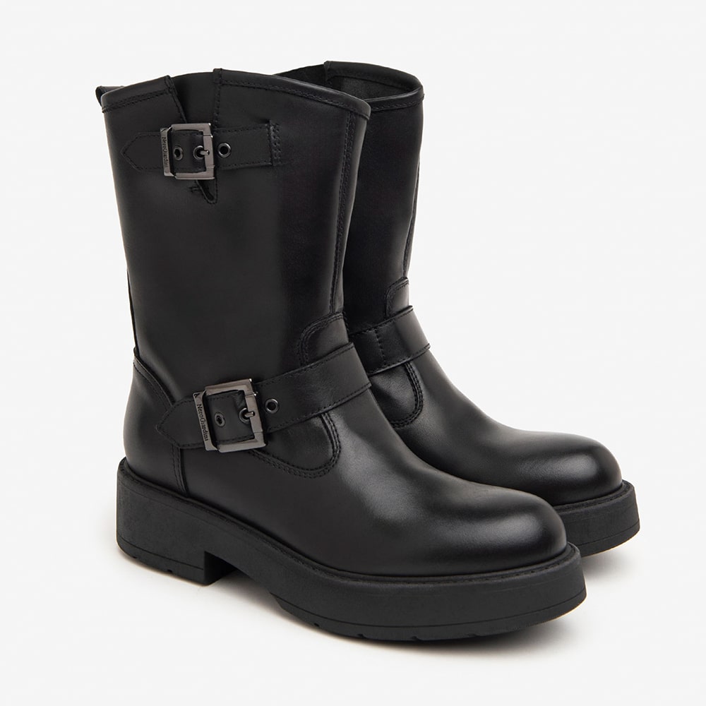 Stivaletto donna NeroGiardini in pelle di colore nero, con accessorio brandizzato e zip laterale per rendere la calzata ancora più comoda, tacco a blocco 5 cm. Una scarpa che non può mancare nel tuo guardaroba! Stivaletti donna bellissimi MADE IN ITALY