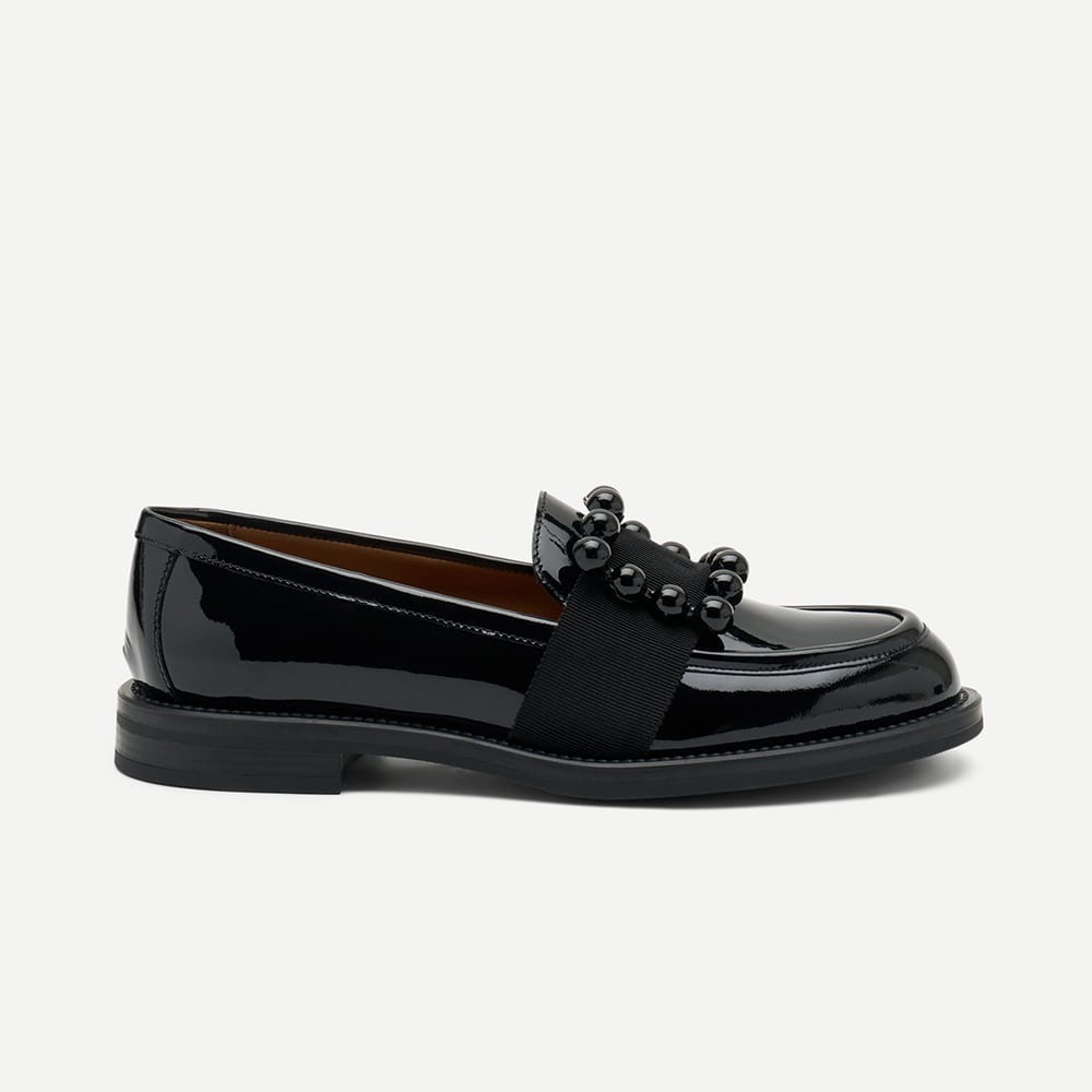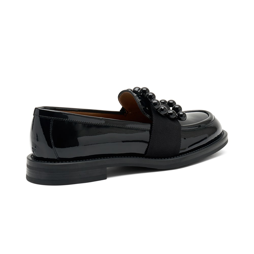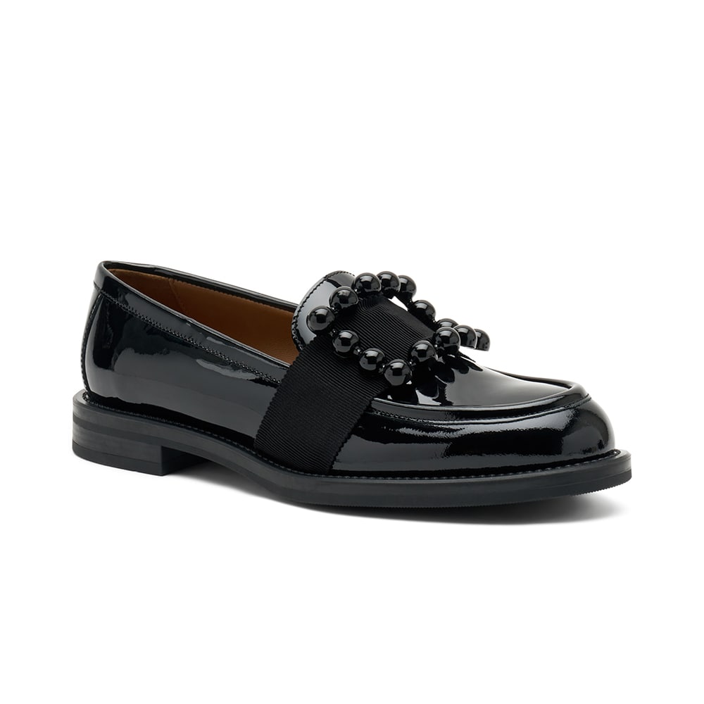 Mocassino Frau donna in vernice lucida con fascia e accessorio a semisfere. Moderno e ricercato dall'effetto lucidissimo che illuminerà ogni tuo passo. Ideale per tutto il giorno o per le tue occasioni speciali. MADE IN ITALY.