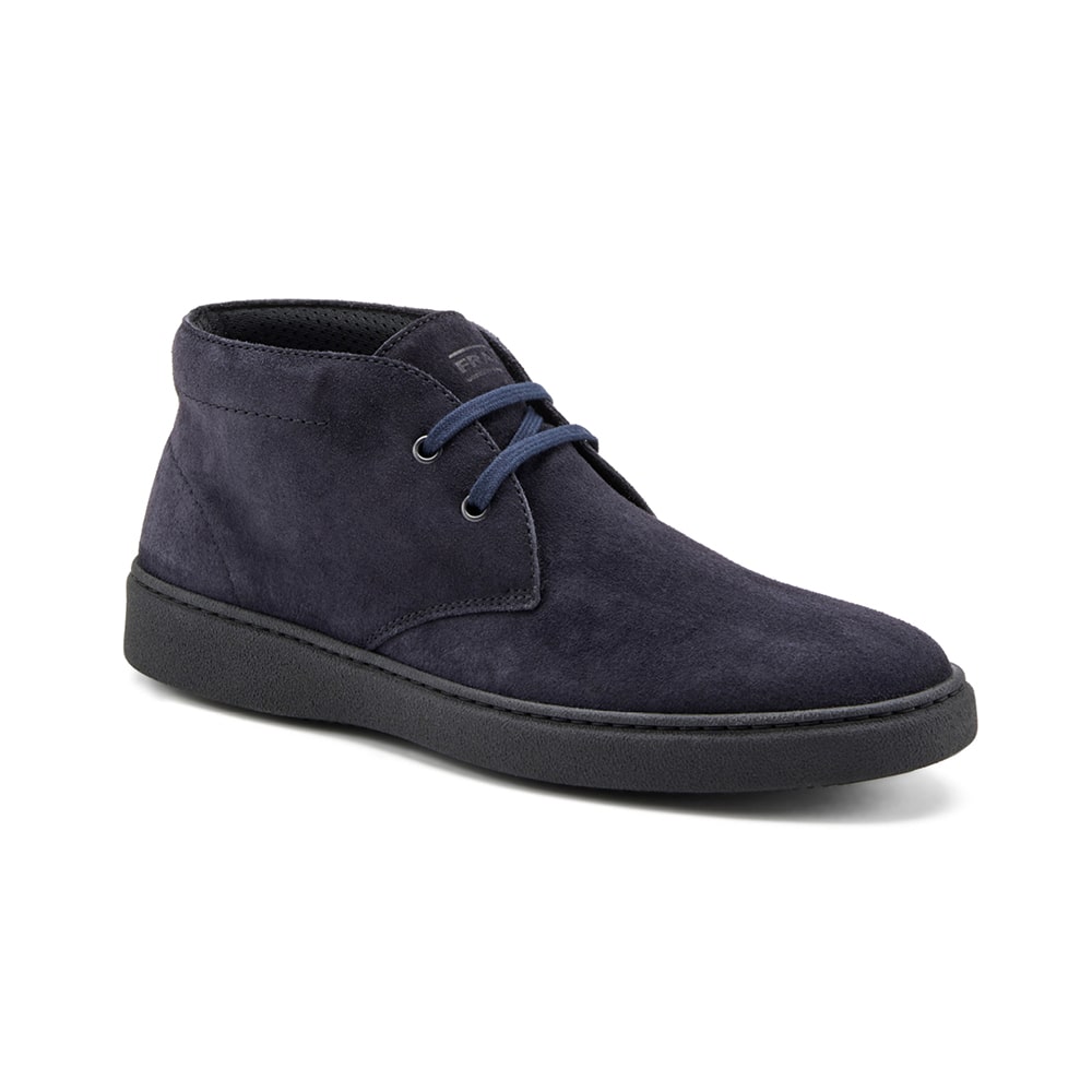 Polacchino uomo Frau Desert boot in pelle scamosciata di colore blu con suola crépe e lacci. Calzatura MADE IN ITALY.