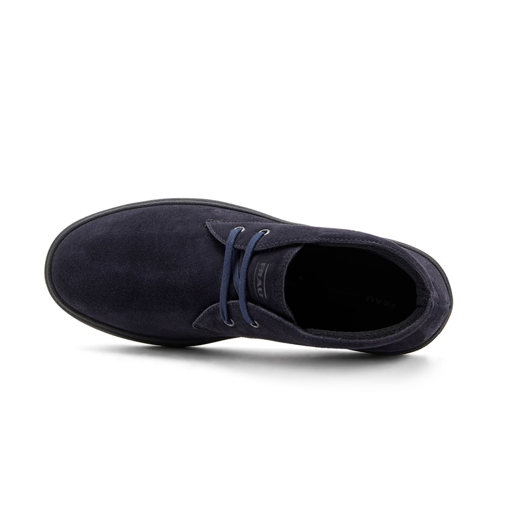 Polacchino uomo Frau Desert boot in pelle scamosciata di colore blu, con lacci. Suola XL che rende la scarpa flessibile e leggerissima. Calzatura MADE IN ITALY.