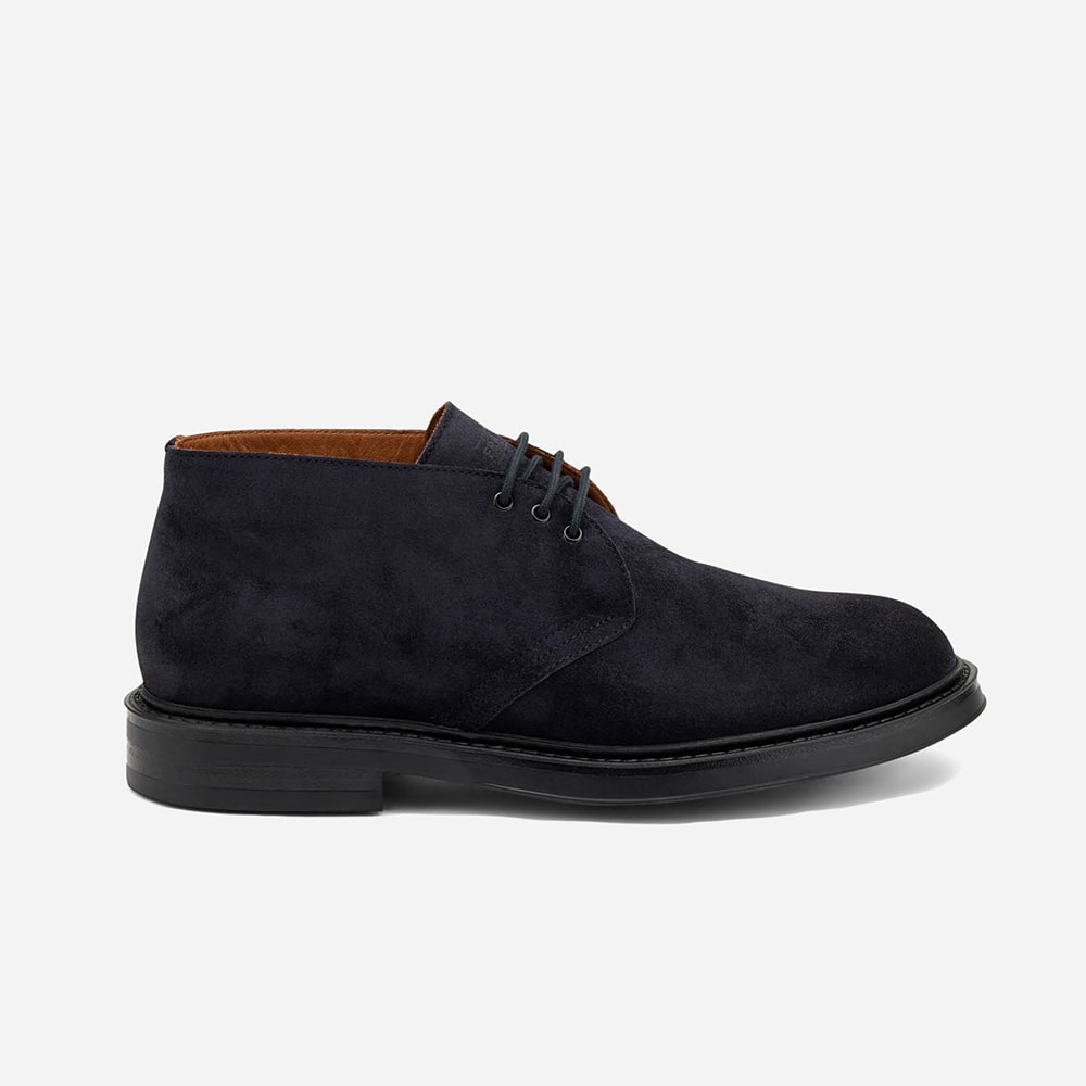 Polacchino uomo Frau Desert boot in pelle scamosciata di colore blu con suola crépe e lacci. Calzatura MADE IN ITALY.