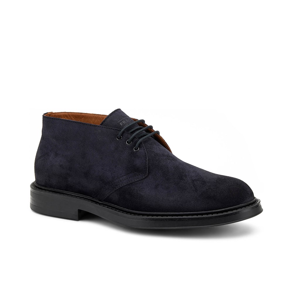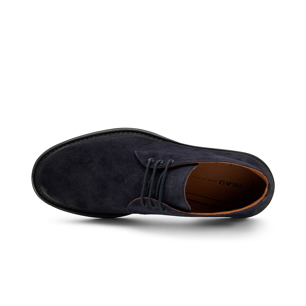 Polacchino uomo Frau Desert boot in pelle scamosciata di colore blu, con lacci. Suola XL che rende la scarpa flessibile e leggerissima. Calzatura MADE IN ITALY.