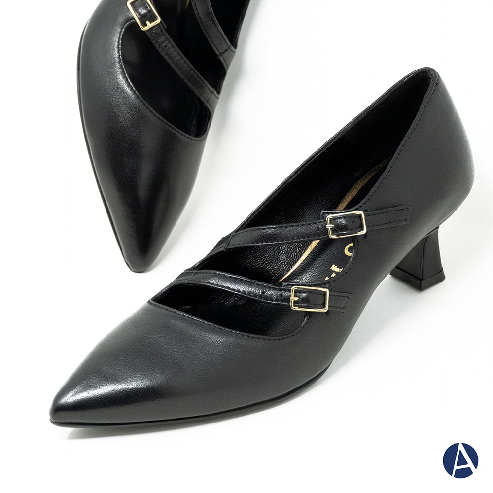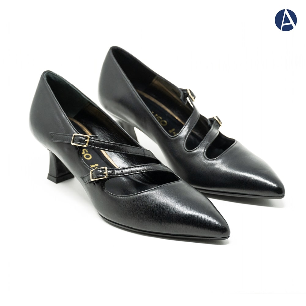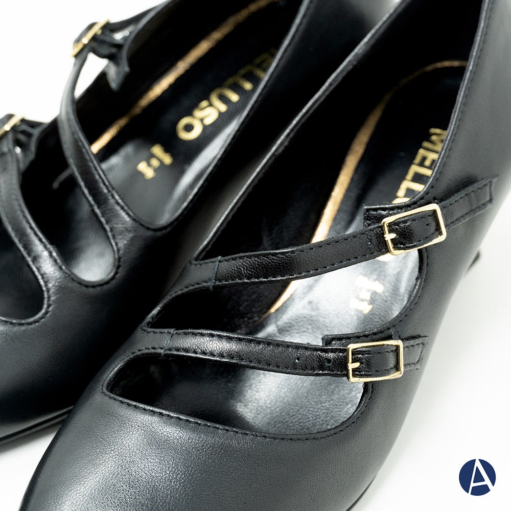Décolleté donna Melluso semiaperta in pelle colore nero con cinturino alla caviglia, tacco largo 8 cm, fondo cuoio. Calzatura elegante e allo stesso tempo comoda da indossare. MADE IN ITALY.