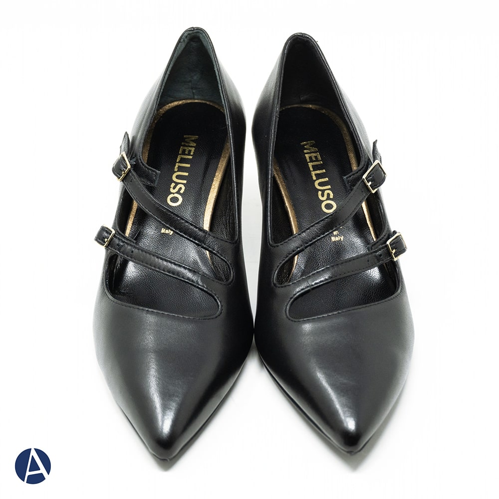 Décolleté donna Melluso in pelle con cinturino trasversale, tacco a rocchetto 7 cm, fondo antiscivolo. Calzatura elegante e allo stesso tempo comoda da indossare. MADE IN ITALY.
