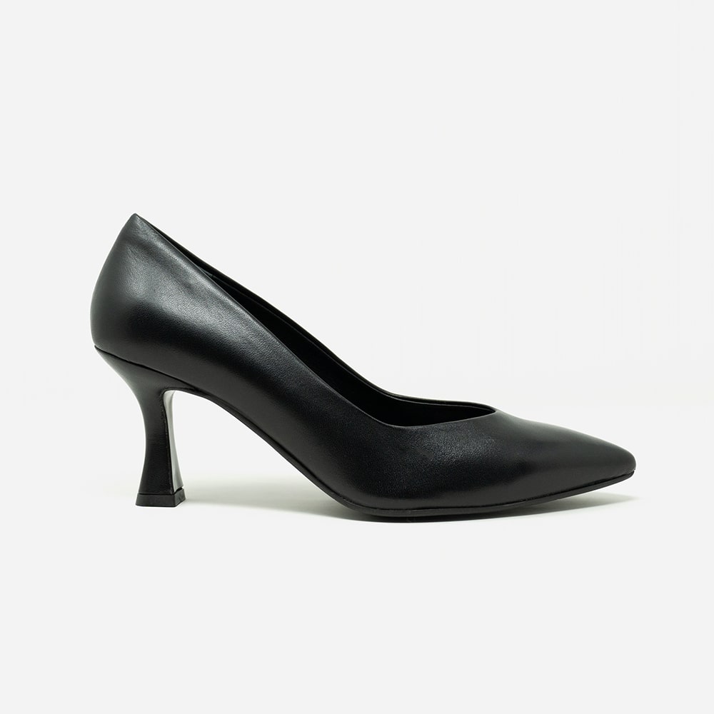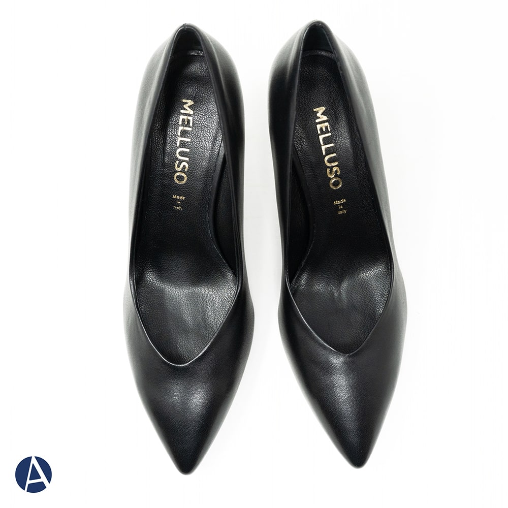 Décolleté Melluso in pelle di colore nero con doppio cinturino, tacco a rocchetto 5 cm, fondo cuoio. Calzatura elegante e allo stesso tempo comoda da indossare. MADE IN ITALY.