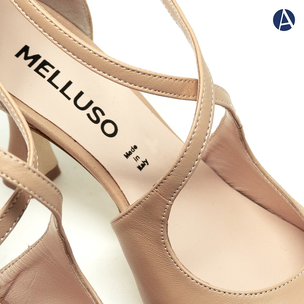 Décolleté donna Melluso in pelle con cinturino trasversale, tacco a rocchetto 7 cm, fondo antiscivolo. Calzatura elegante e allo stesso tempo comoda da indossare. MADE IN ITALY.