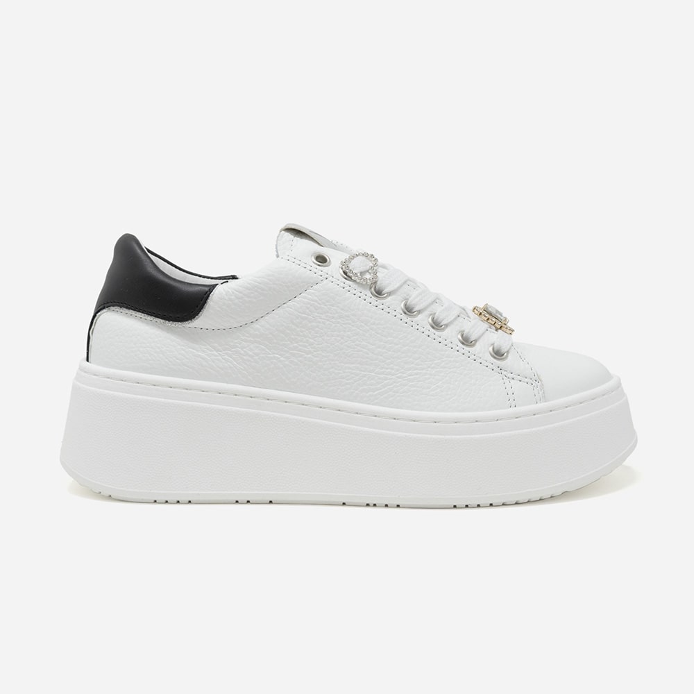Sneakers donna VITAMINA TU in pelle di colore bordeaux con accessori gioiello sui lacci e inserto posteriore in glitter e pelle. Calzatura perfetta con i jeans ed outfit informali.