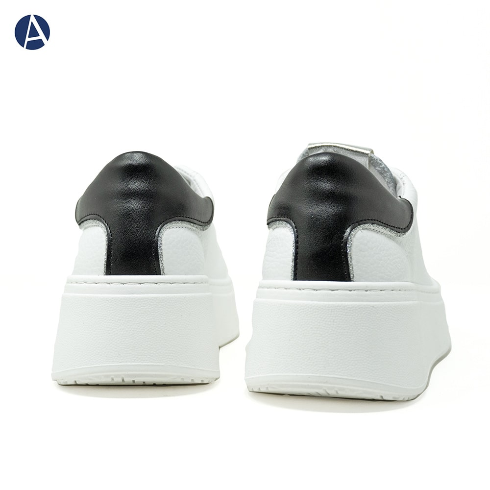 Sneakers donna VITAMINA TU in pelle scamosciata di colore nero con inserti in pelle bianca e riporto posteriore in glitter. Calzatura perfetta con i jeans ed outfit informali.