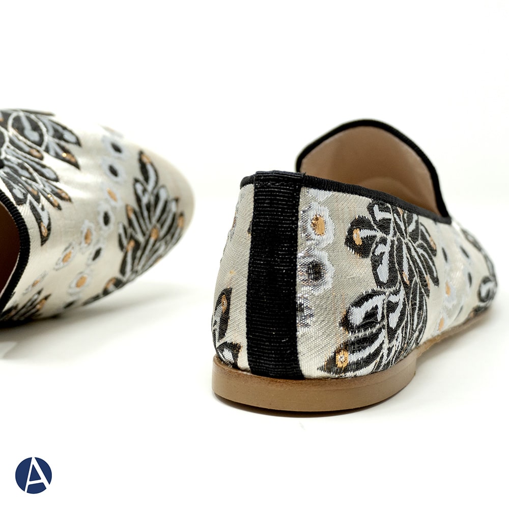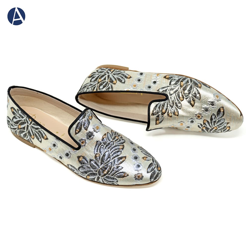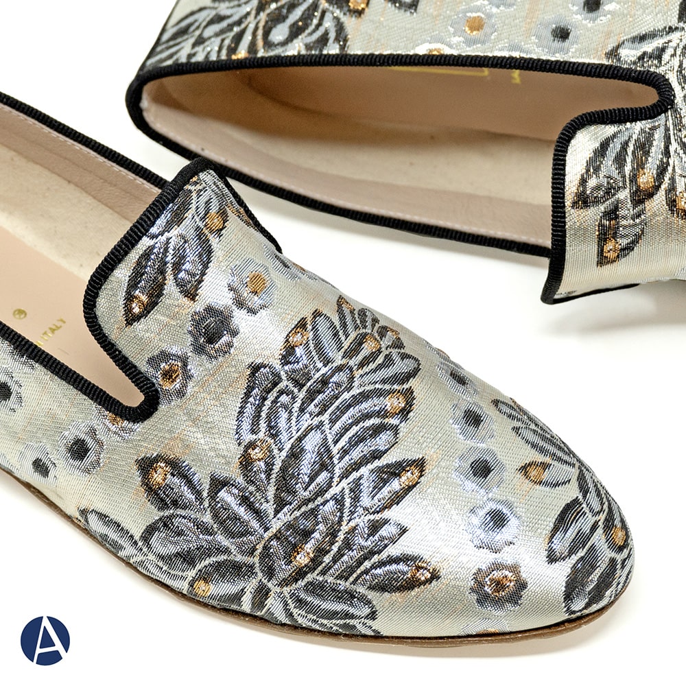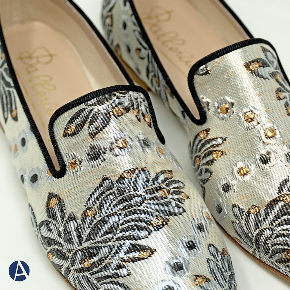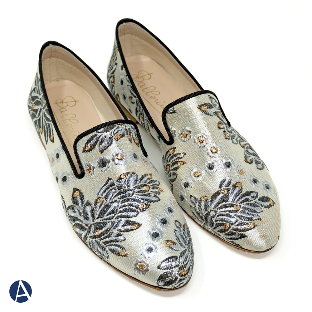 Ballerina by Ester donna con pailettes argento silver a tema floreale. Fondo cuoio. Perfetta per i tuoi look alla moda e sbarazzini ! Qualità Made in Italy.