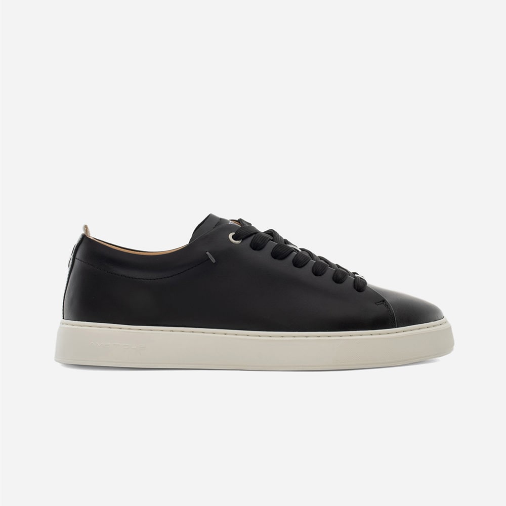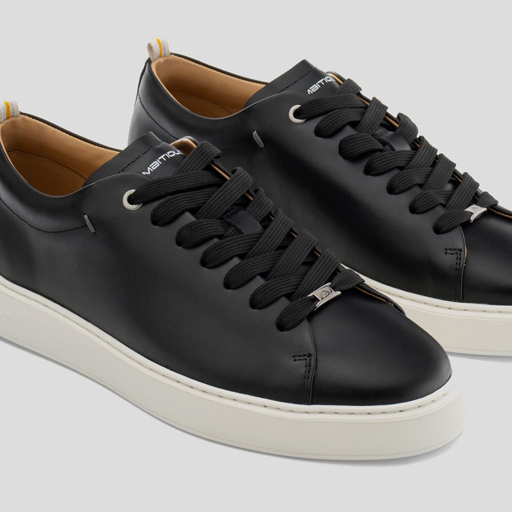 Sneakers uomo Ambitious Venture Performance Runner in pelle nera, riporti scamosciati neri e bianchi sul tallone. Calzatura unica che unisce lo stile Ambitious con la tecnologia Michelin, dove comfort e performance (massimo grip) si incontrano donando a chi la indossa una nuova esperienza di movimento.