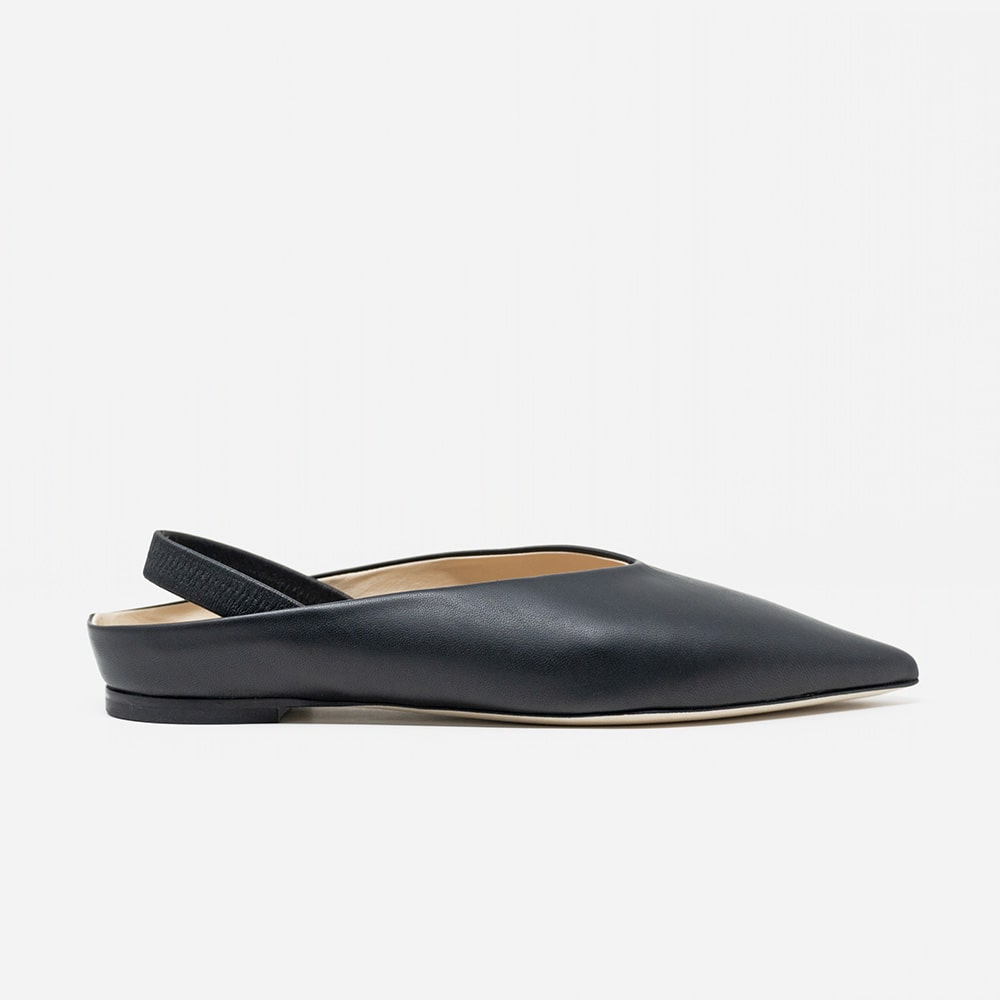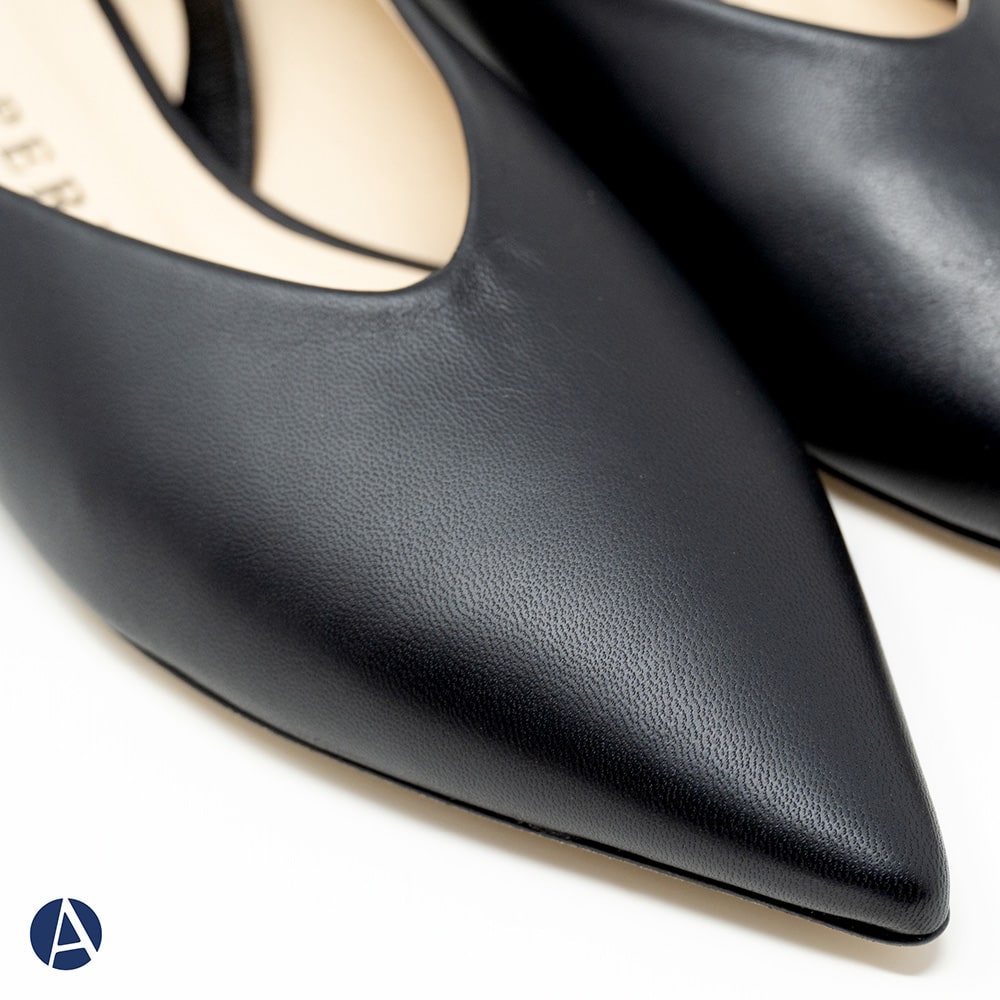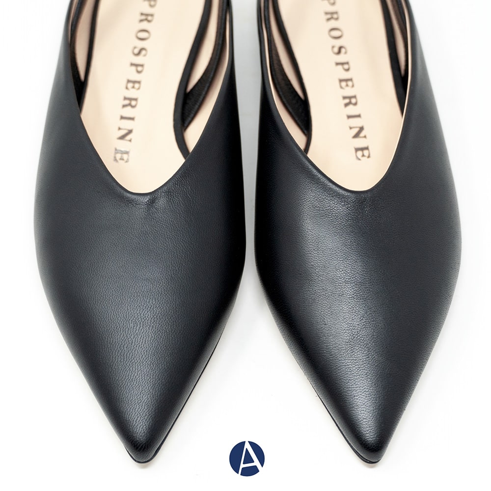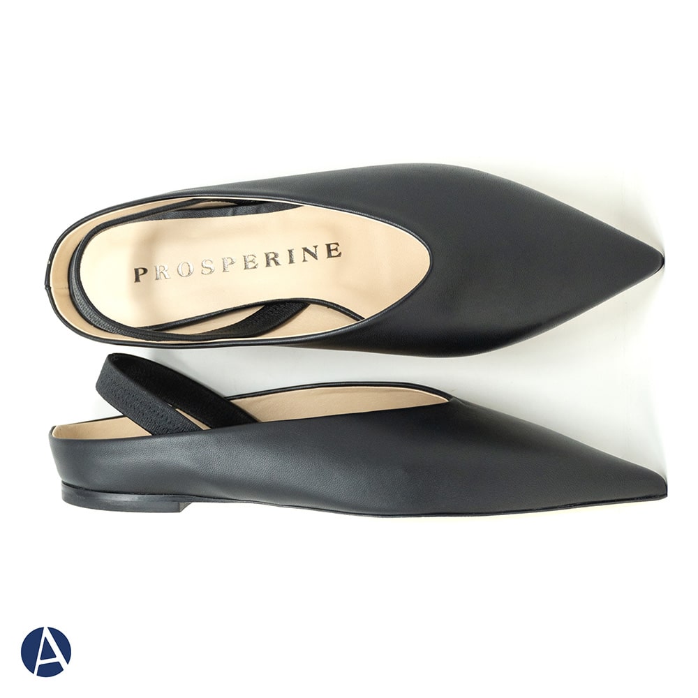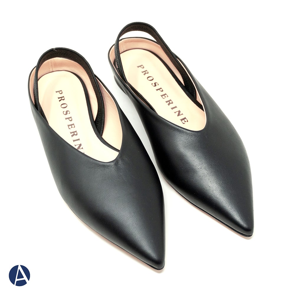 Ballerina donna Prosperine in nappa nera con fascia elastica sul tallone, tacco basso da 1,5 cm, fondo cuoio. Calzature artigianali donna di alta qualità interamente MADE IN ITALY. Perfette per rendere i tuoi outfit unici e sofisticati!