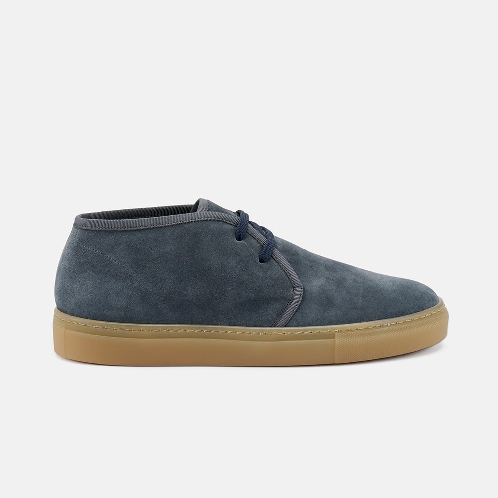 Polacchino uomo Frau Desert boot in pelle scamosciata di colore blu con suola crépe e lacci. Calzatura MADE IN ITALY.