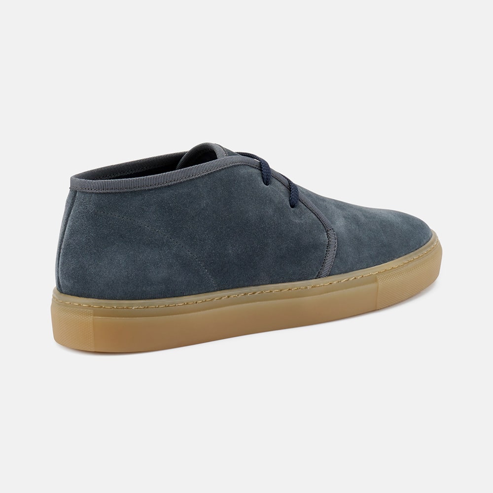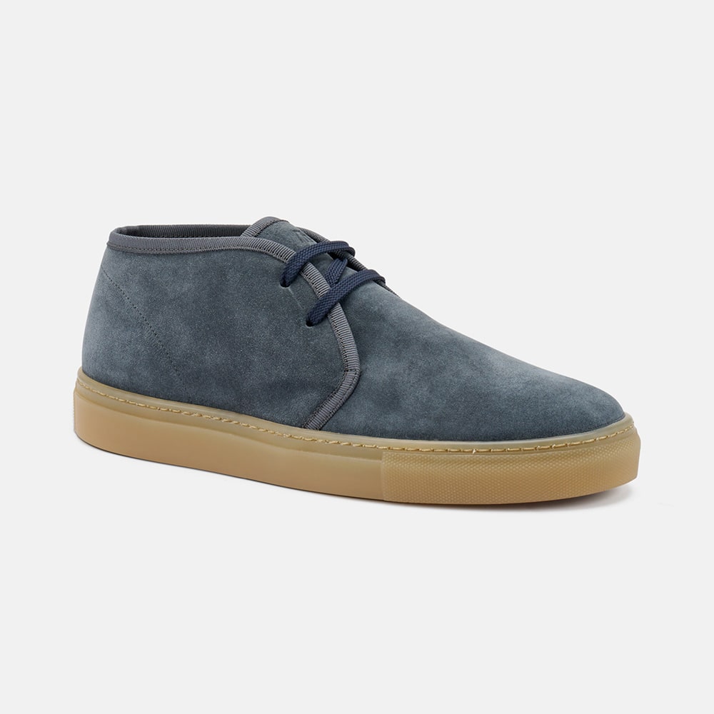 Polacchino uomo Frau Desert boot in pelle scamosciata di colore blu, con lacci. Suola XL che rende la scarpa flessibile e leggerissima. Calzatura MADE IN ITALY.