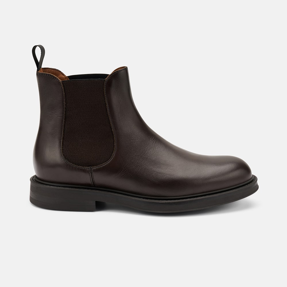 Stivaletto Beatles uomo Frau liscio in pelle di colore marrone, con elastico bilaterale per una pratica e veloce calzata. Calzatura comoda MADE IN ITALY.