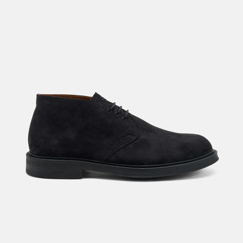 Polacchino uomo Frau Desert boot in pelle scamosciata di colore blu con suola crépe e lacci. Calzatura MADE IN ITALY.