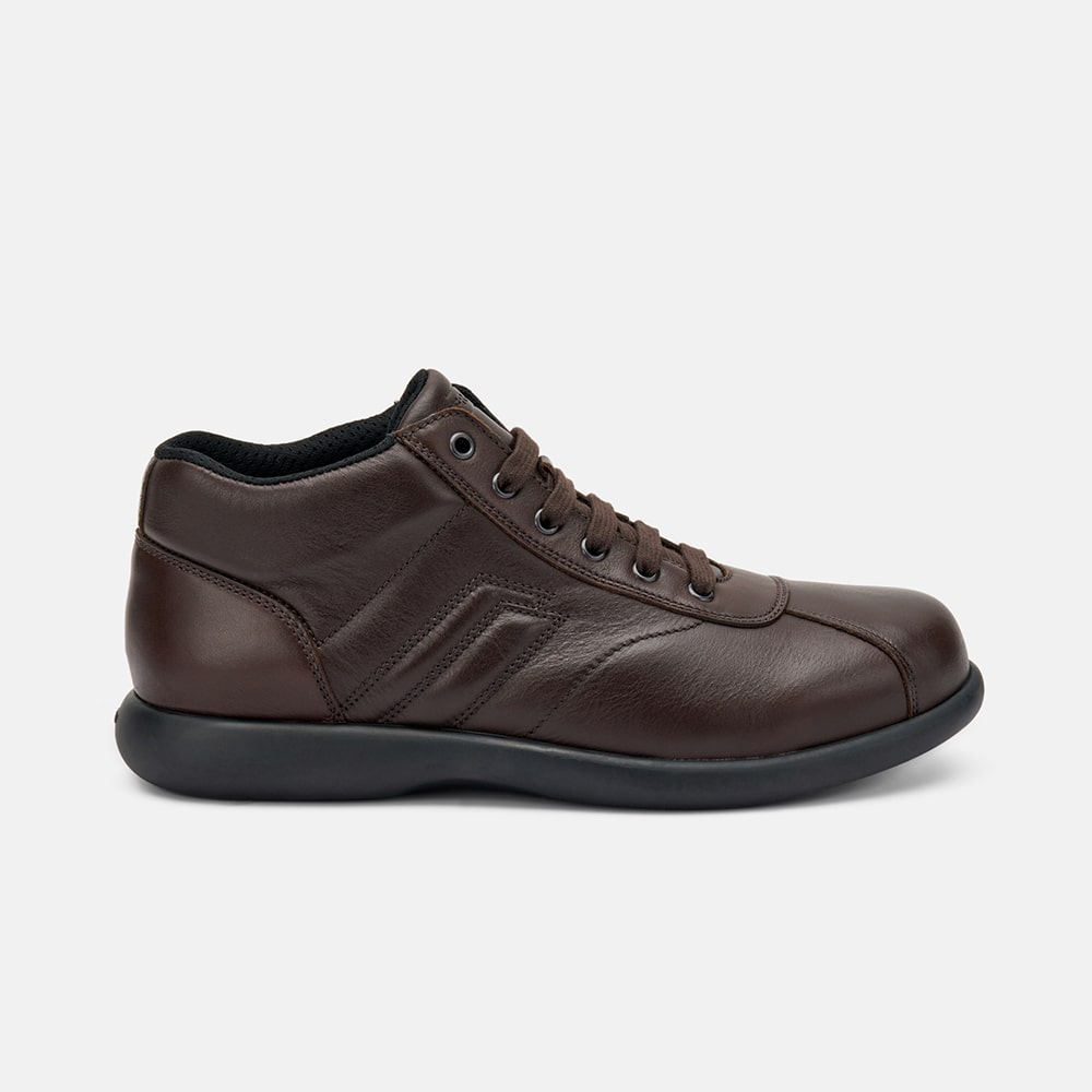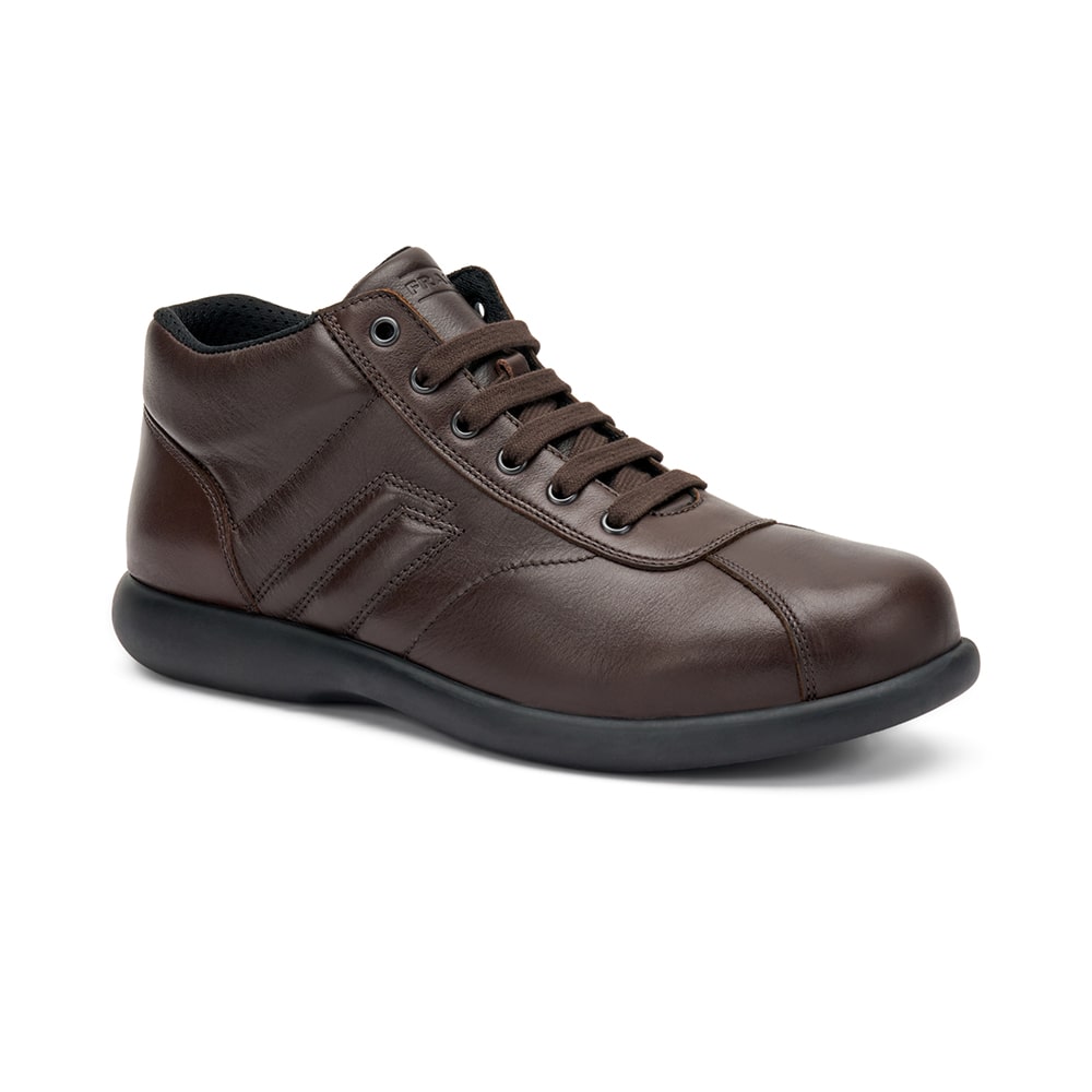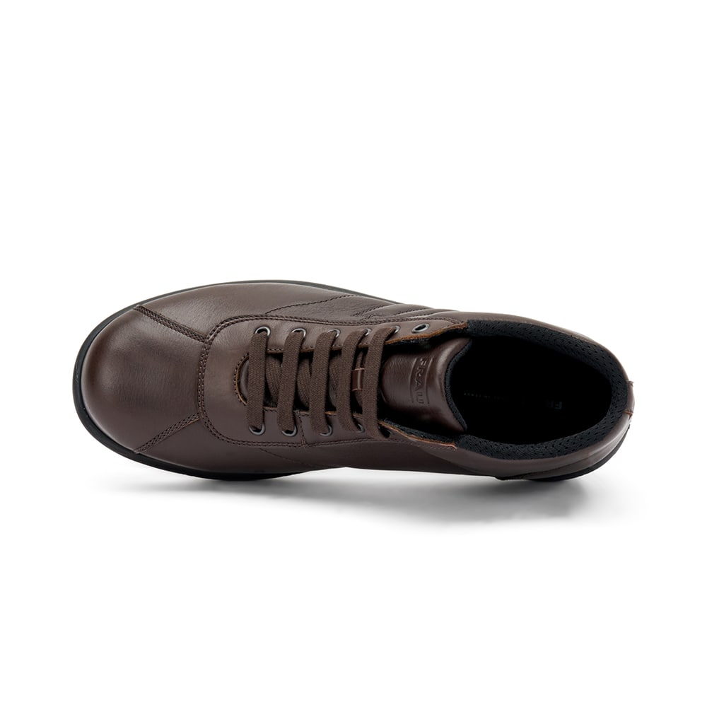 Sneakers casual alta Frau uomo in morbida pelle scamosciata grigio visone con impunture decorative. Fondo in gomma e sottopiede anatomico estraibile, perfette da indossare tutto il giorno. Calzatura Made in Italy.