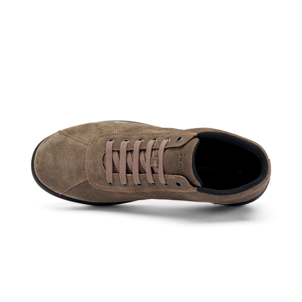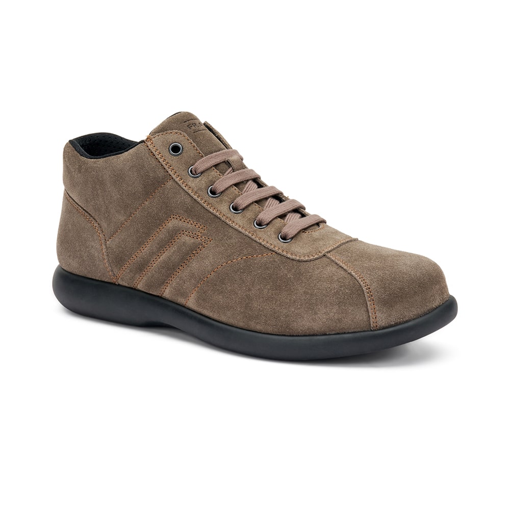 Sneakers uomo Frau in pelle scamosciata di colore grigio visone, con lacci. Suola XL che rende la scarpa flessibile e leggerissima. Calzatura MADE IN ITALY.