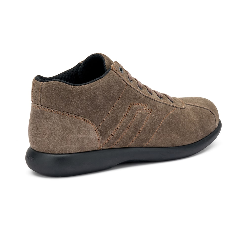 Sneakers casual alta Frau uomo in morbida pelle marrone con impunture decorative. Fondo in gomma e sottopiede anatomico estraibile, perfette per l'uso quotidiano. Calzatura Made in Italy.