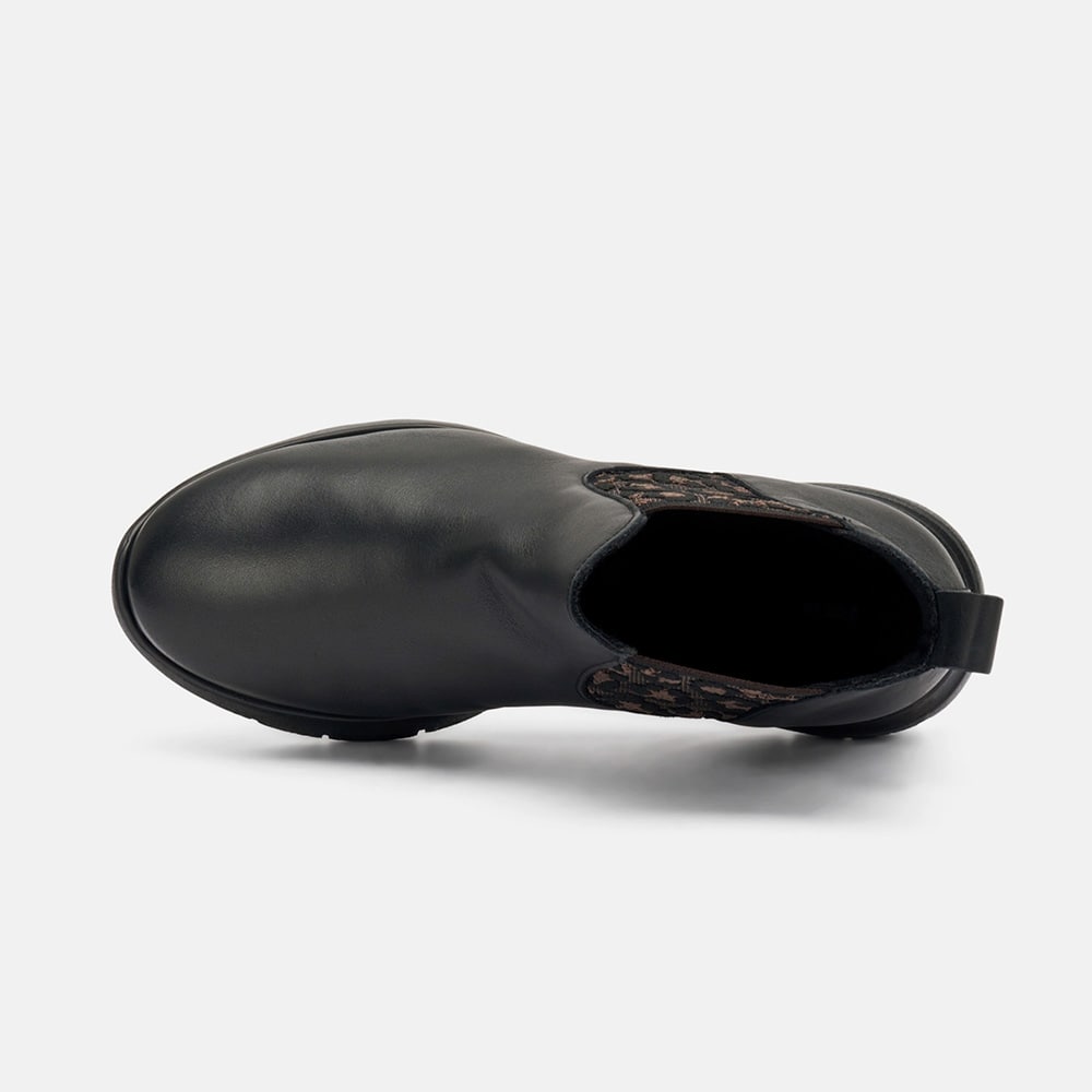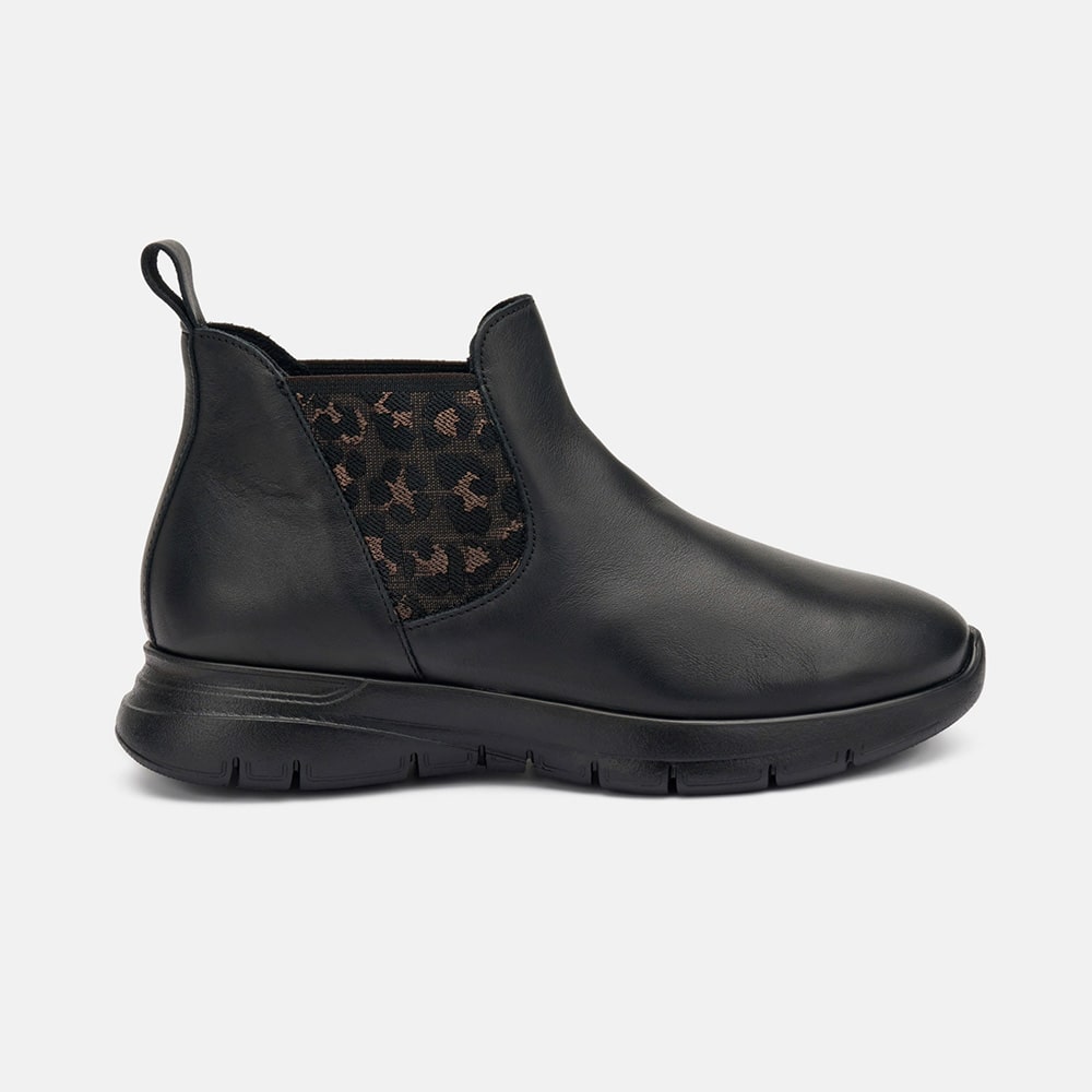 Stivaletto Frau donna Beatles comfort tech in pelle di colore nero, con elastici bilaterali a trama animalier. Fondo XL che rende la scarpa flessibile e leggerissima. Calzatura MADE IN ITALY.