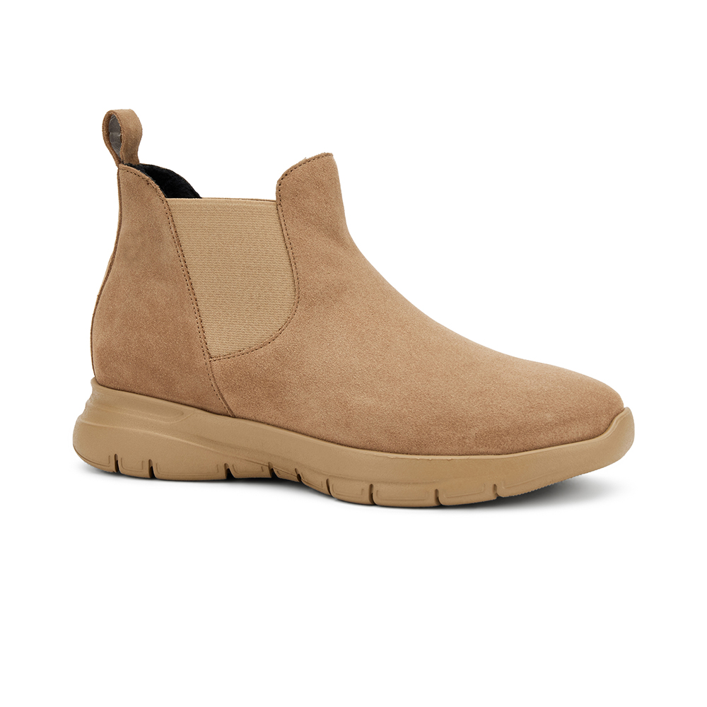 Stivaletto Frau donna Beatles comfort in pelle scamosciata di colore beige, con elastici bilaterali. Fondo XL che rende la scarpa flessibile e leggerissima. Calzatura MADE IN ITALY.