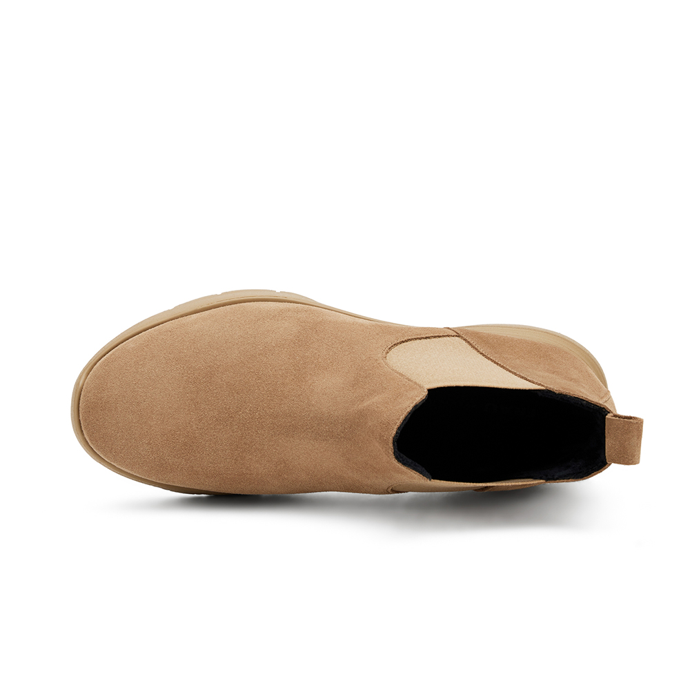 Stivaletto Frau beatles in pelle scamosciata colore beige (Pear) con suola platform in tinta e inserto elastico in misto lana. Suola in platform in XL che conferisce estrema leggerezza alla calzatura. MADE IN ITALY.