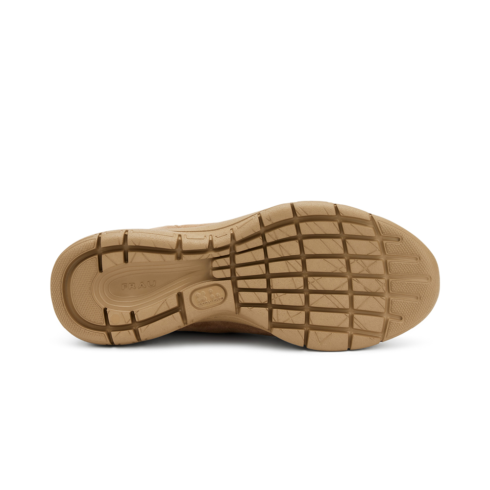 Stivaletto Frau beatles in morbida pelle scamosciata di colore beige con suola scanalata e inserto elastico in lana bilaterale. Suola dal design moderno che conferisce estrema leggerezza, comfort e grip alla calzatura. MADE IN ITALY.