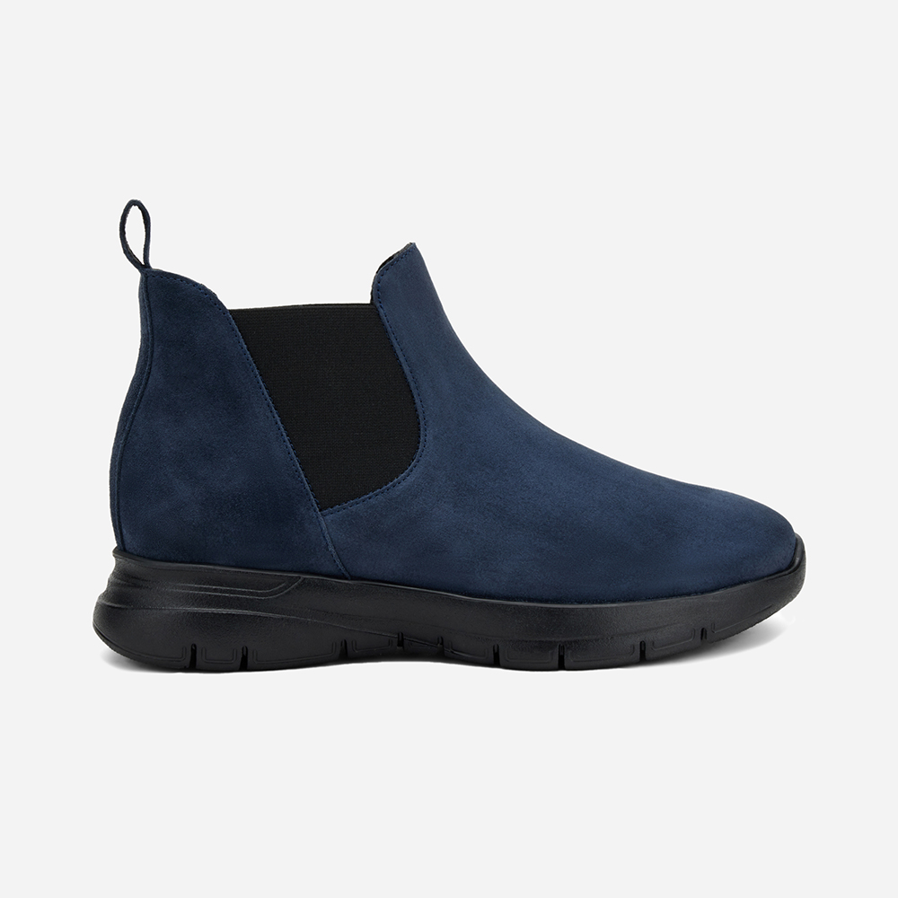 Stivaletto Frau donna Beatles comfort tech in pelle scamosciata di colore blu, con elastici bilaterali. Fondo XL che rende la scarpa flessibile e leggerissima. Calzatura MADE IN ITALY.