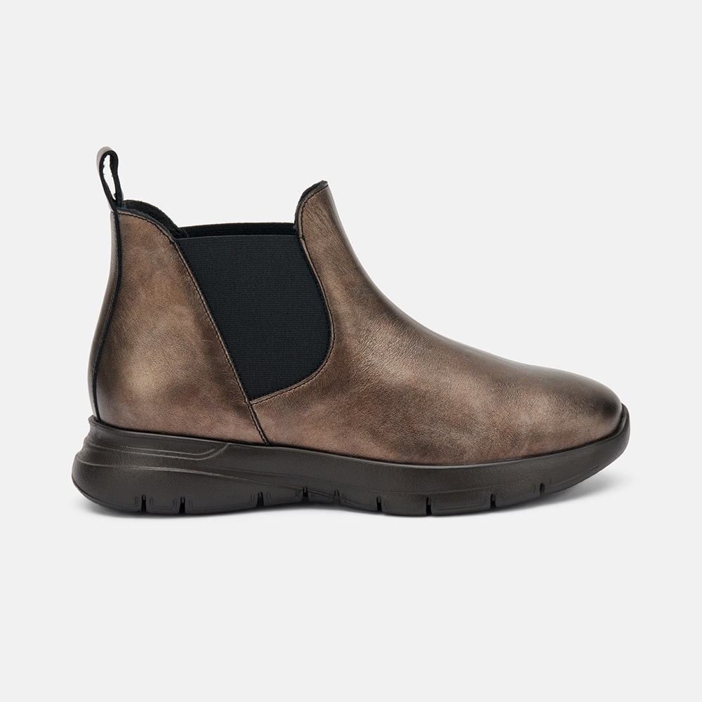 Stivaletto Frau donna Beatles comfort in pelle di colore canna di fucile, con elastici bilaterali. Fondo XL che rende la scarpa flessibile e leggerissima. Calzatura MADE IN ITALY.