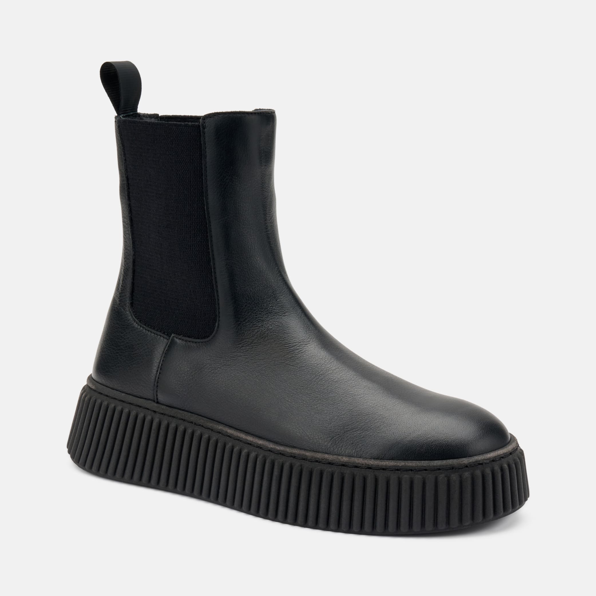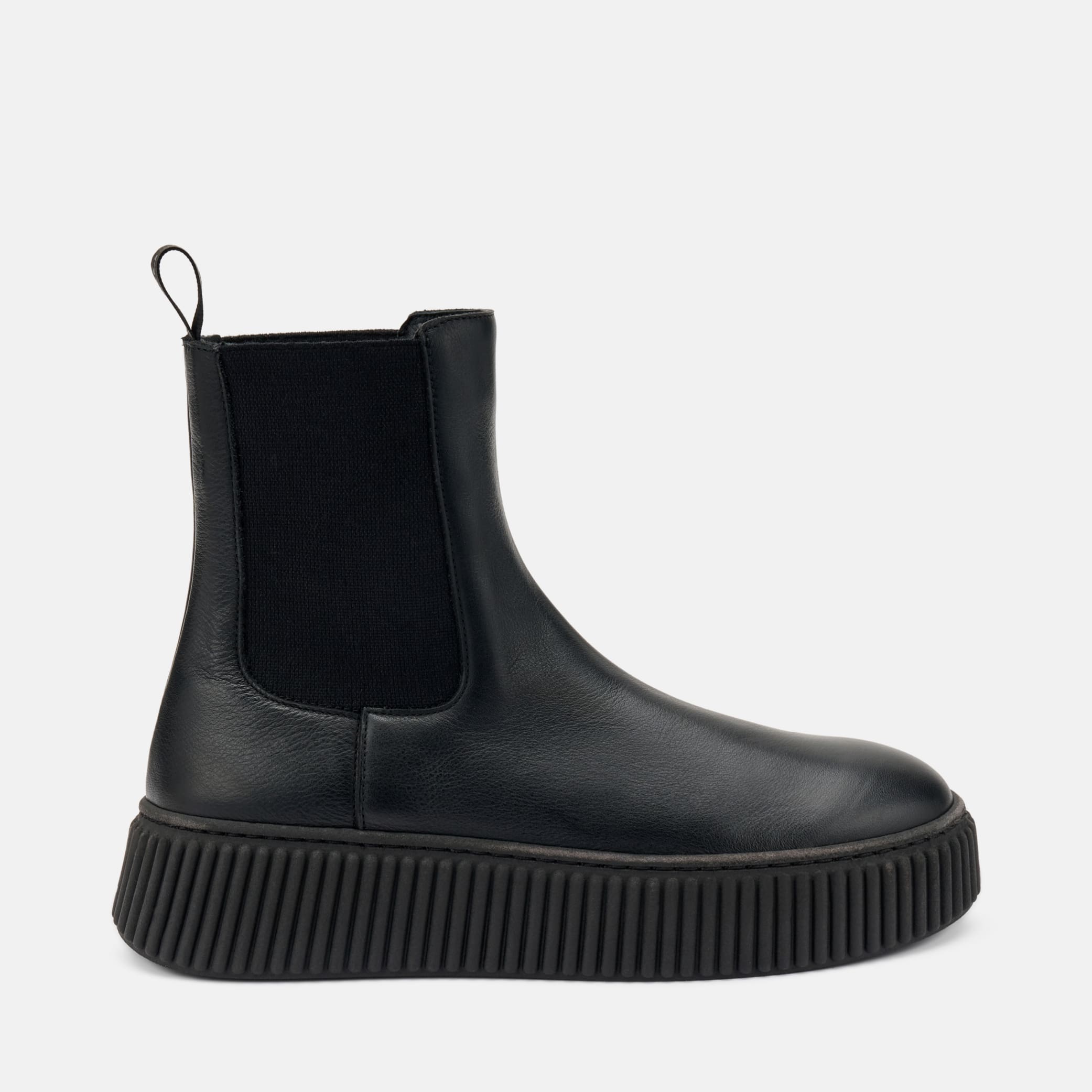 Stivaletto Frau beatles in morbida pelle di colore nero con suola scanalata e inserto elastico in lana bilaterale. Suola dal design moderno che conferisce estrema leggerezza, comfort e grip alla calzatura. MADE IN ITALY.