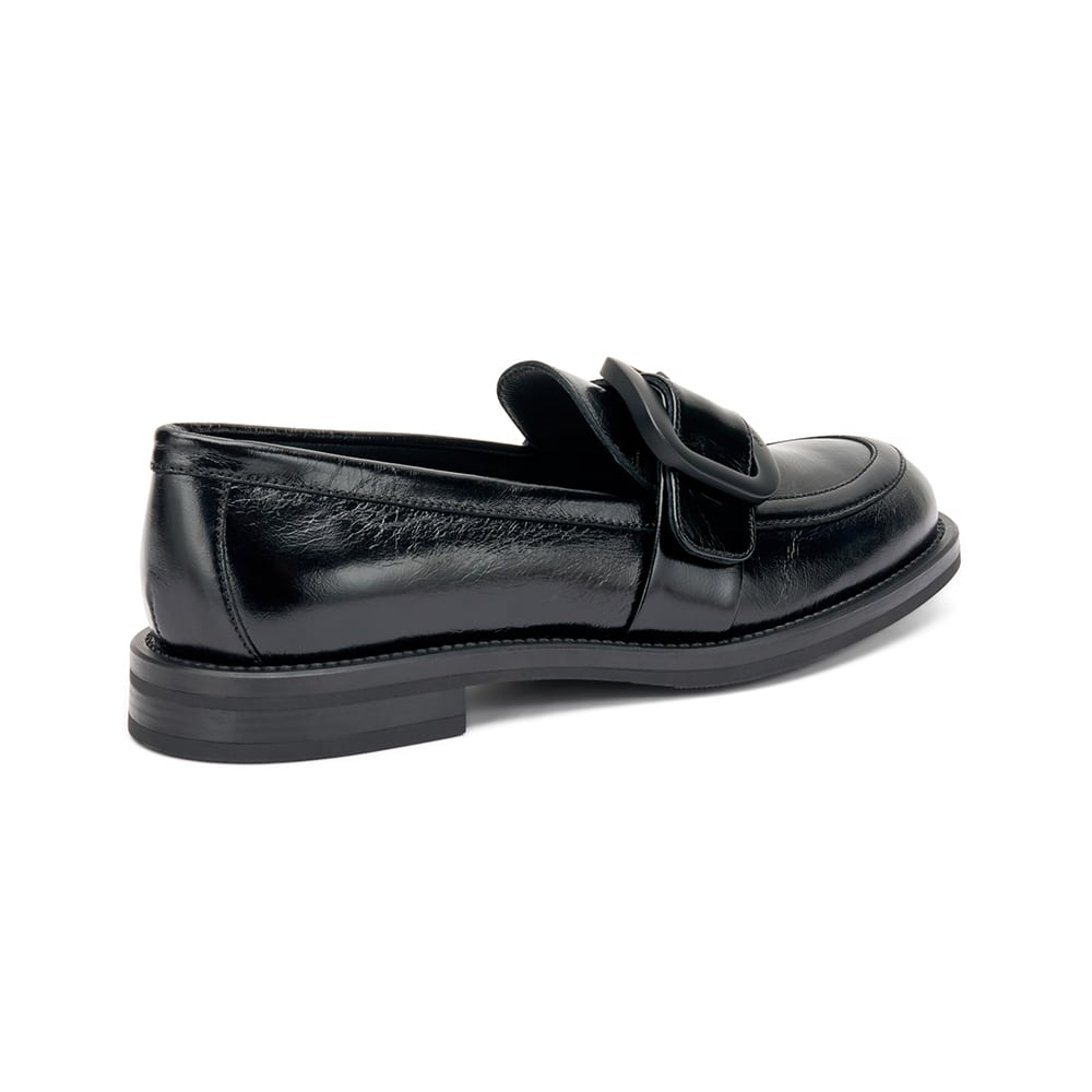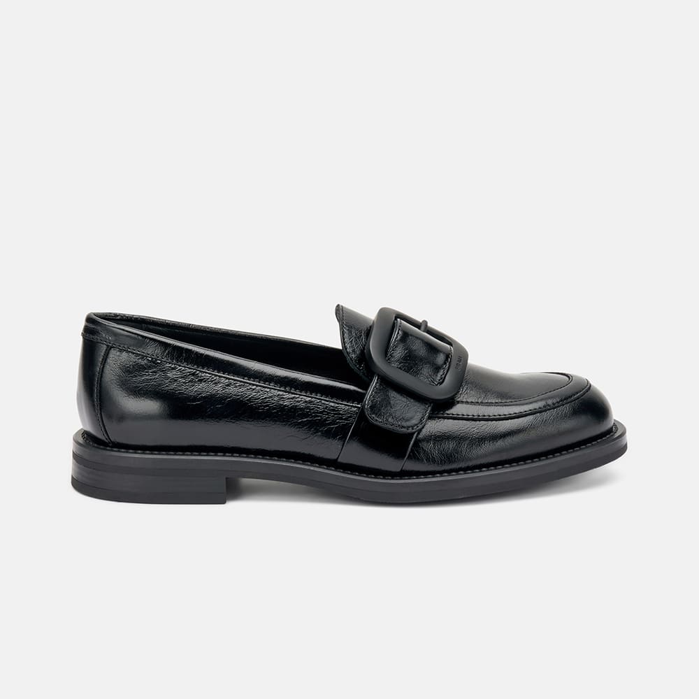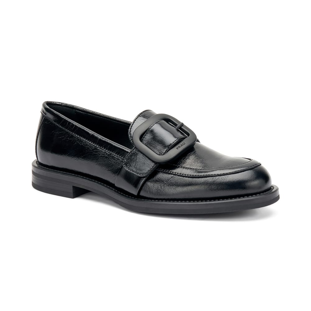 Mocassino Frau donna in pelle lucida stropicciata di colore nero con fibbia opaca a contrasto che conferisce una raffinatezza alla calzatura. Un classico sempre alla moda. MADE IN ITALY.