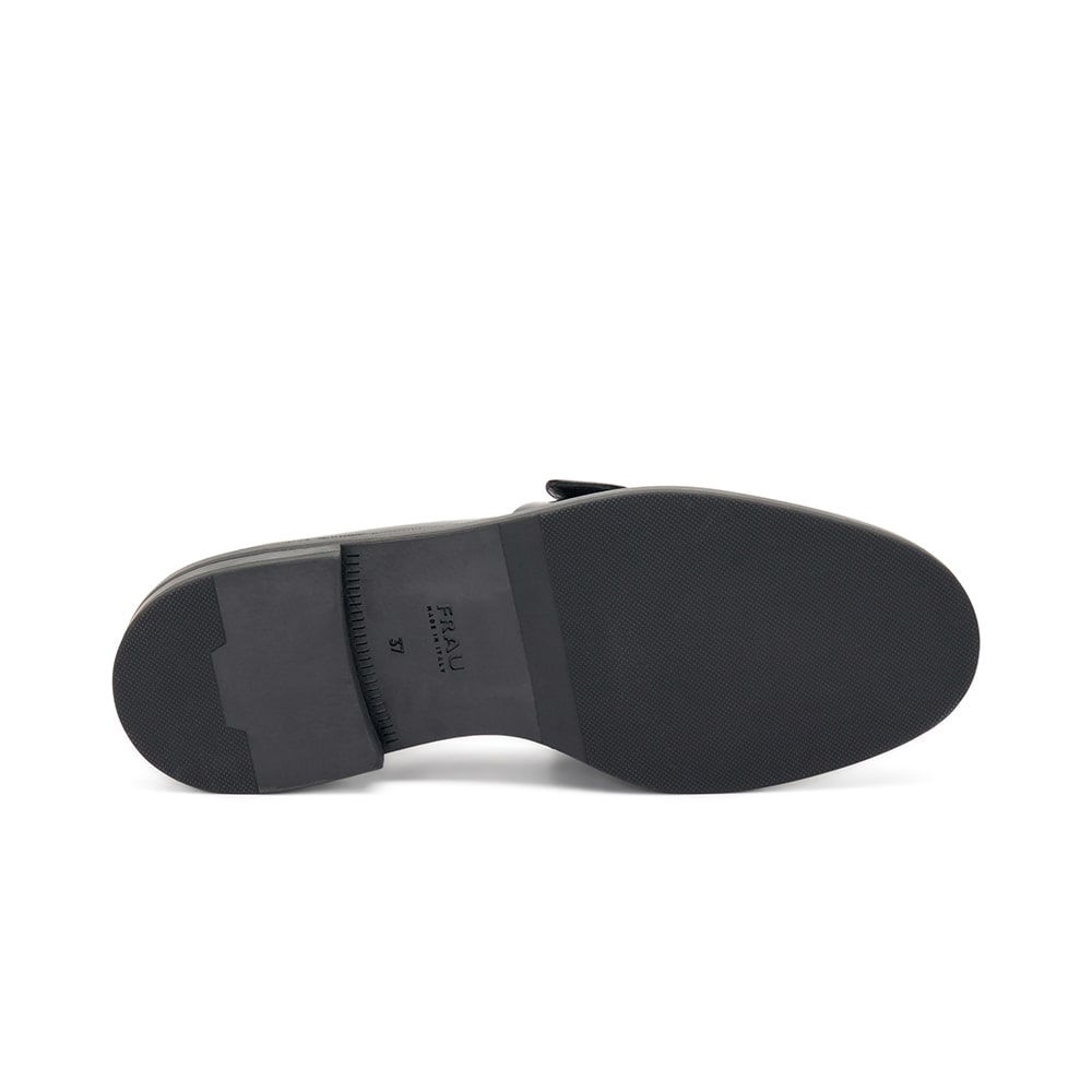 Mocassino Frau donna in morbidissima pelle di colore nero con elegante morsetto argento. Calzatura dalle linee essenziali, femminile e raffinata. Qualità made in Italy.