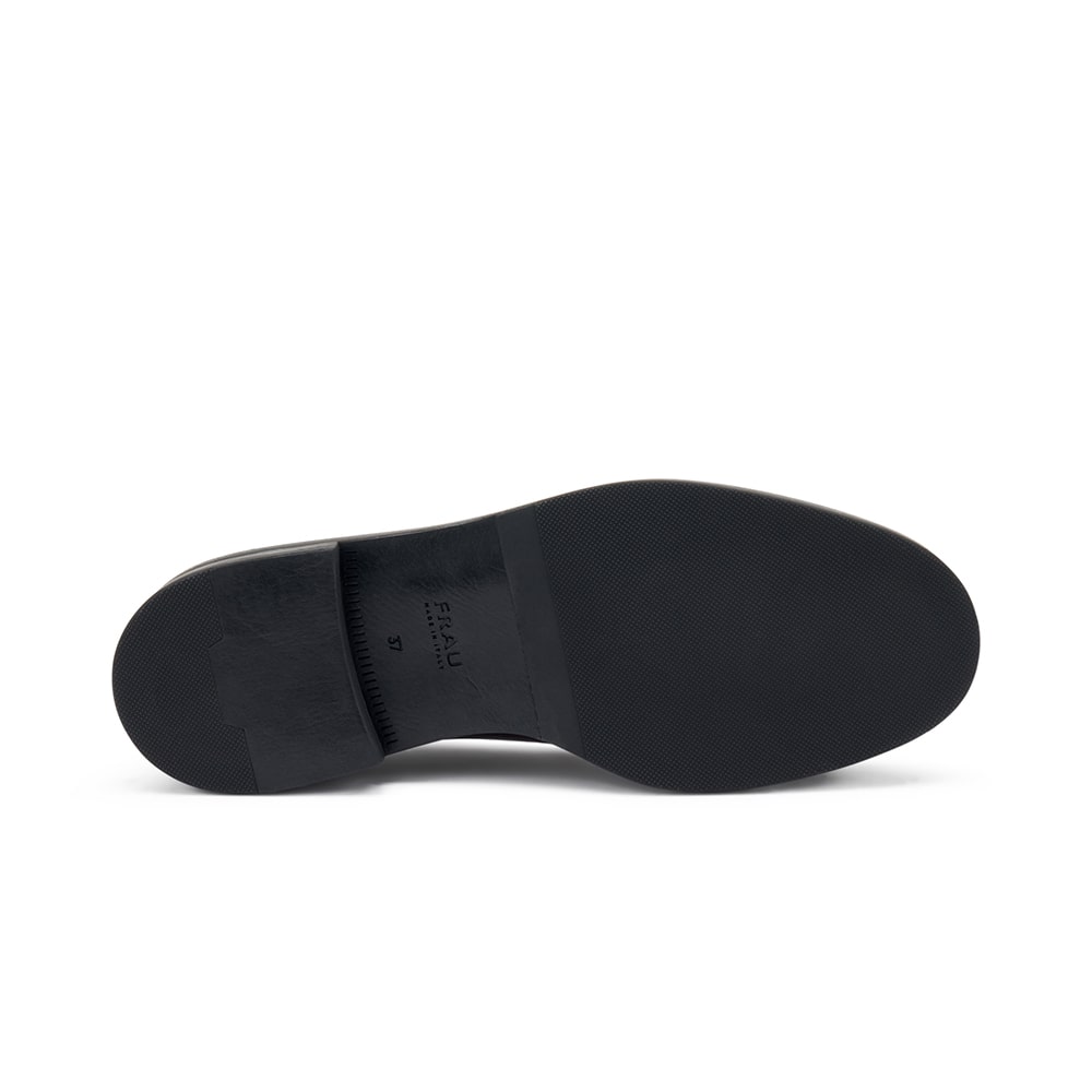 Mocassino Frau donna in pelle di colore nero con frangia. Alternativa al classico mocassino con morsetto. Divertente e sbarazzino che rispecchia il trend della moda MADE IN ITALY.