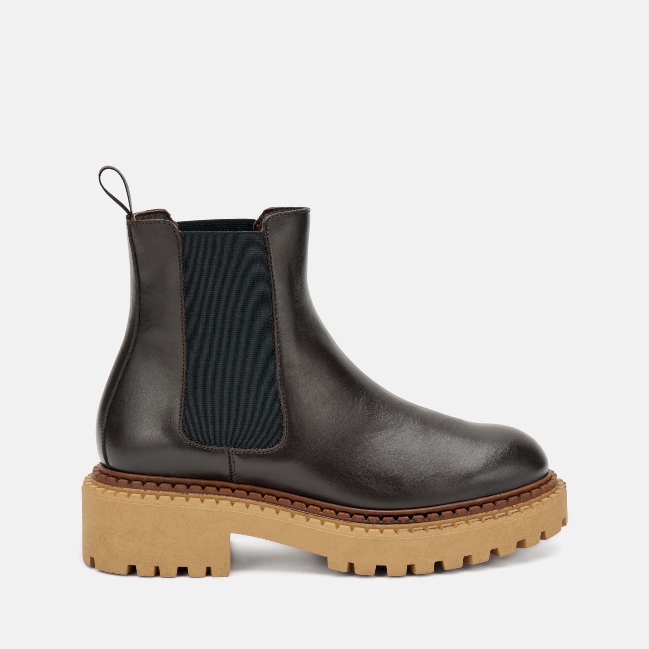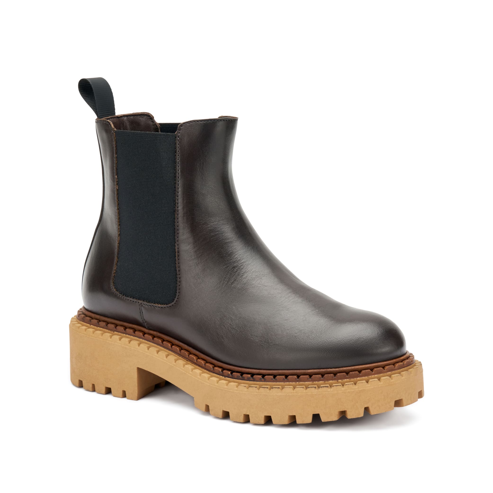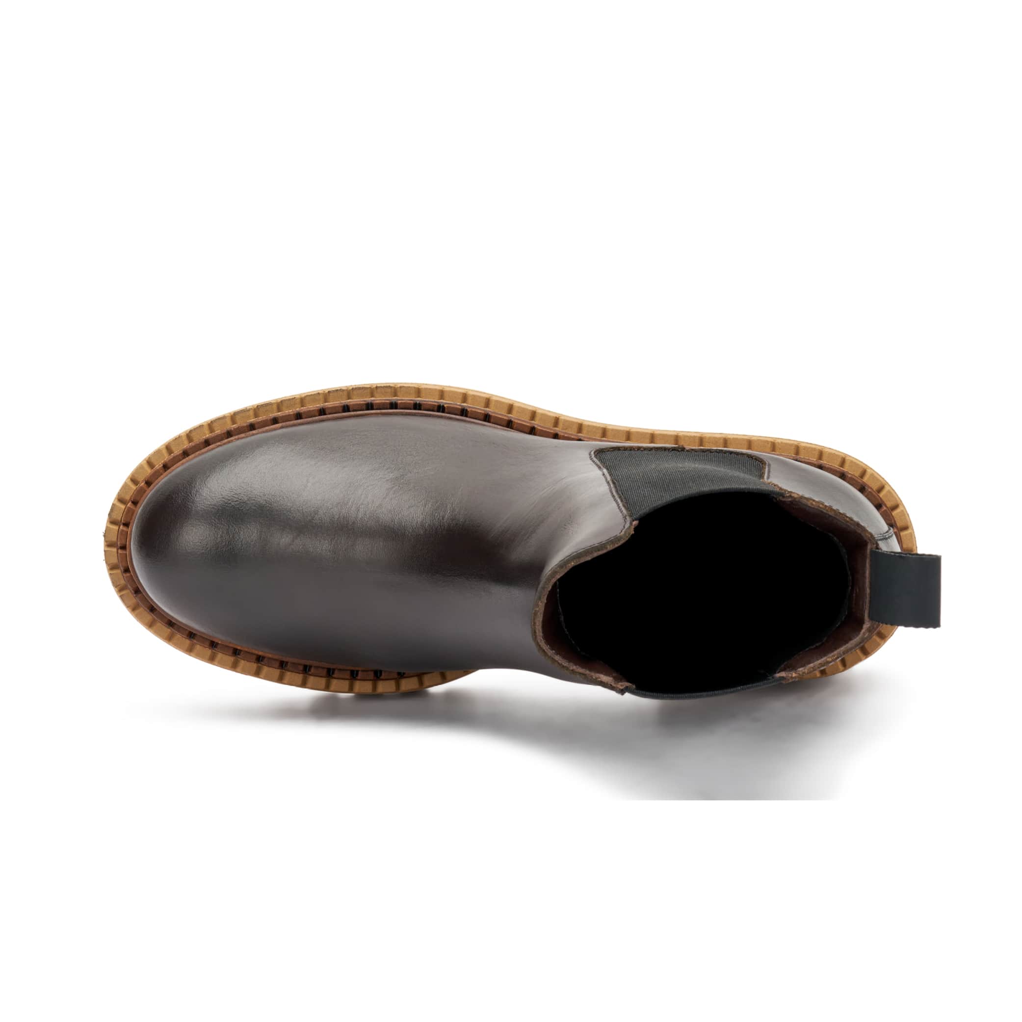 Stivaletto Frau donna Beatles in pelle di colore testa di moro, con elastici bilaterali. Suola a carro e doppio guardolo a contrasto. Sottopiede estraibile in memory foam, tecnologia all'avanguardia per un comfort duraturo. Calzatura MADE IN ITALY.