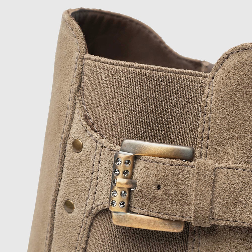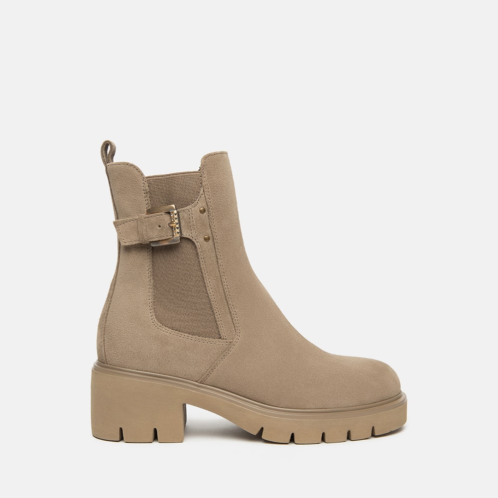 Stivaletti Chelsea donna NeroGiardini realizzati in camoscio colore beige, elastici laterali con accessorio. Fondo in gomma e soletta in memory che si modella delicatamente al piede. Stivaletti estremamente comodi da indossare tutto il giorno realizzati con materiali di alta qualità. MADE IN ITALY.