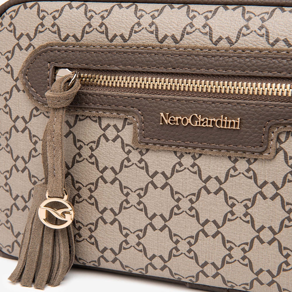 Borsa a tracolla da donna NeroGiardini in materiale tecnico e accessori di qualità. MADE IN ITALY Dimensione: 32 x 25 x 10 Materiale Esterno: Materiale Tecnico Materiale Interno: Tessuto Sintetico Colore: Beige Chiusura: Zip