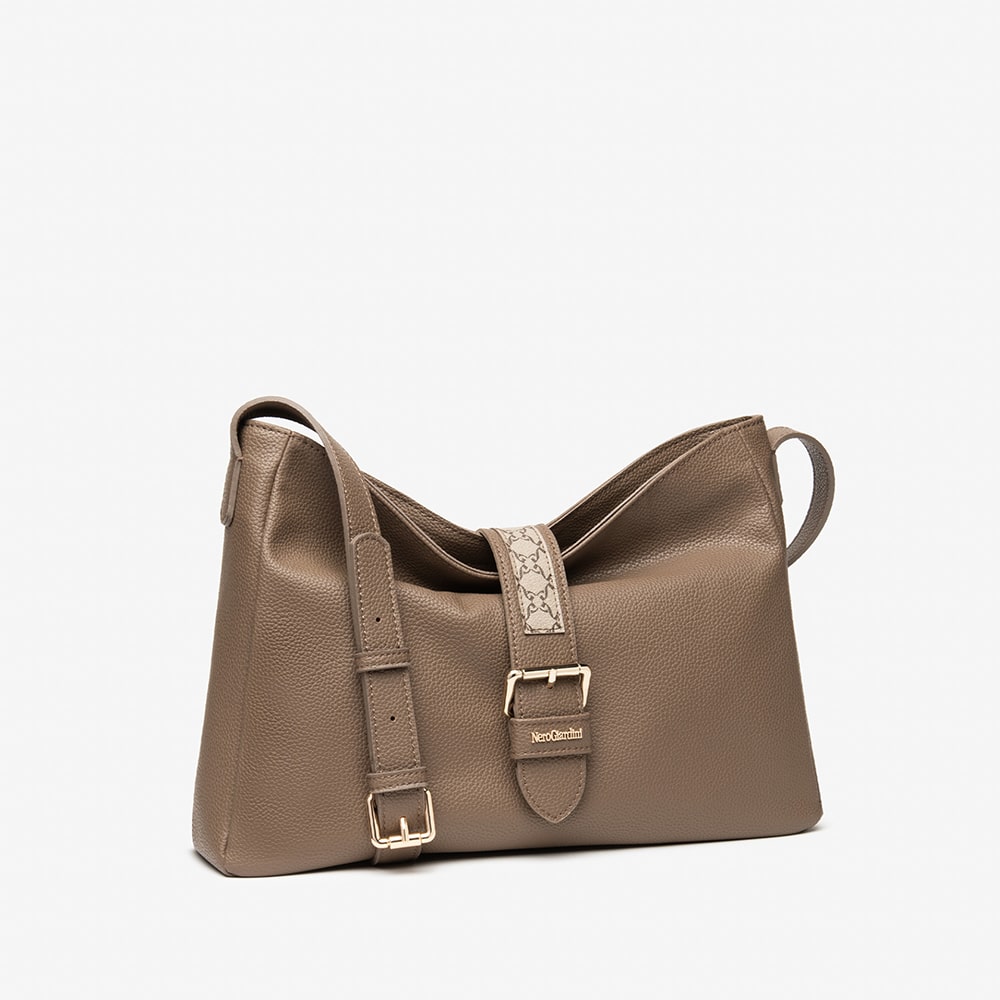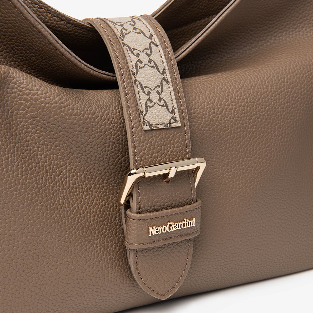 Borsa hobo da donna NeroGiardini in pelle e accessori di qualità. MADE IN ITALY Dimensione: 26 x 22 x 10 Materiale Esterno: Pelle Materiale Interno: Tessuto Sintetico Colore: Beige Chiusura: Zip