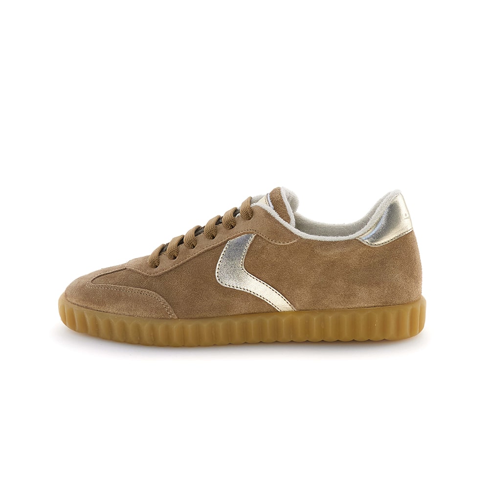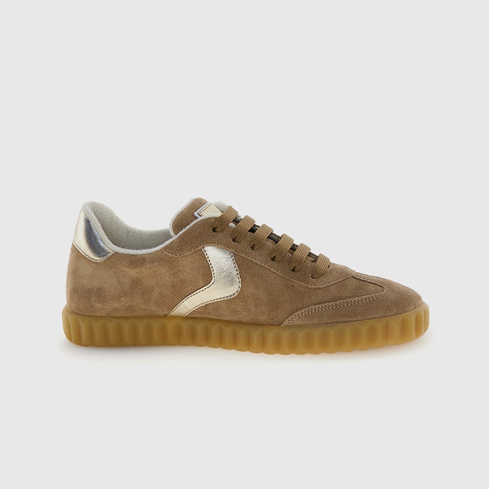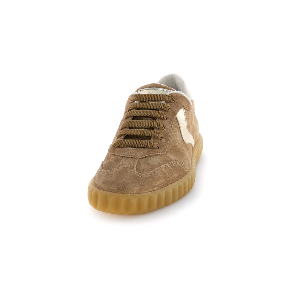 Sneakers donna Voile Blanche Ines in pelle e suede marrone con lacci in tinta. Dettagli laterali e sul tallone laminato platino. Soletta interna estraibile e suola in para con bordo zigrinato.