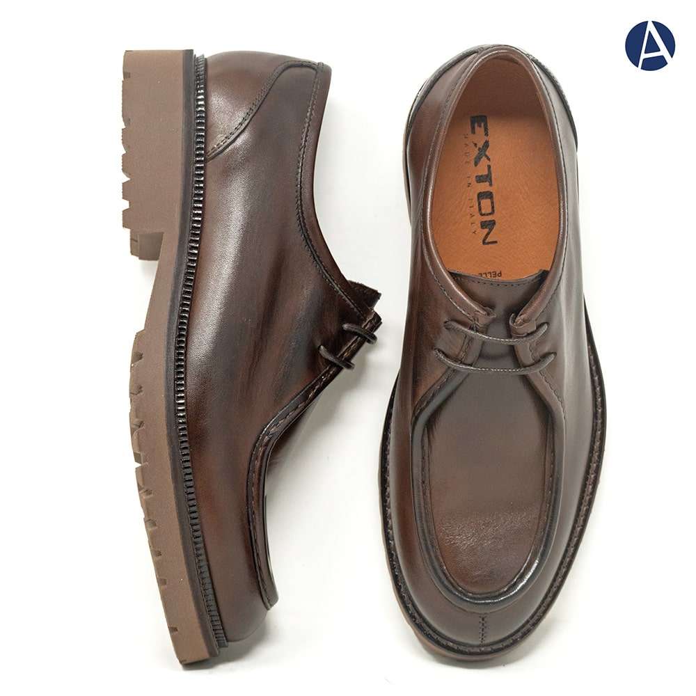 Mocassino uomo Exton in pelle marrone, fondo gomma leggerissimo con antiscivolo. Ideale per le cerimonia oppure da indossare sotto i jeans per un outfit raffinato ed elegante. Calzature MADE IN ITALY.