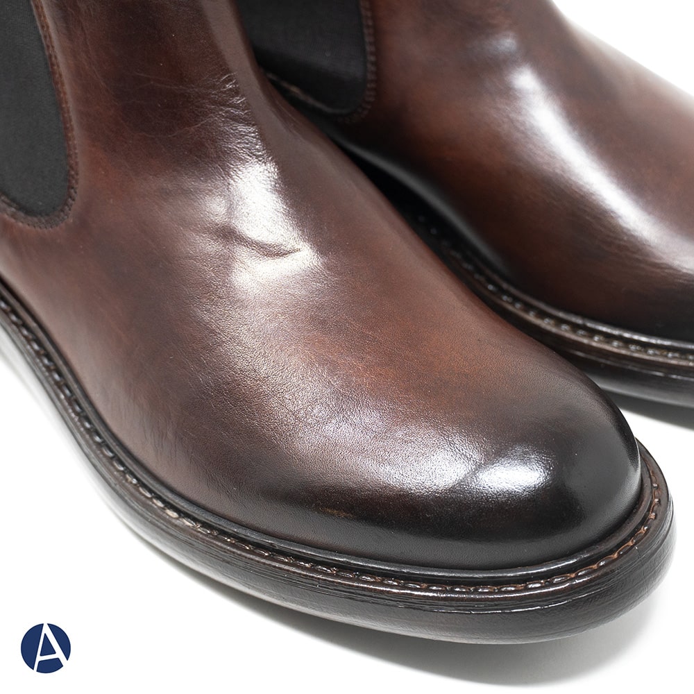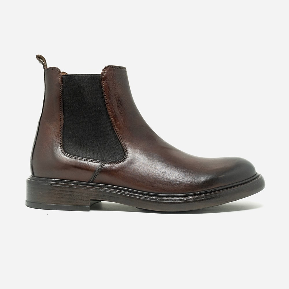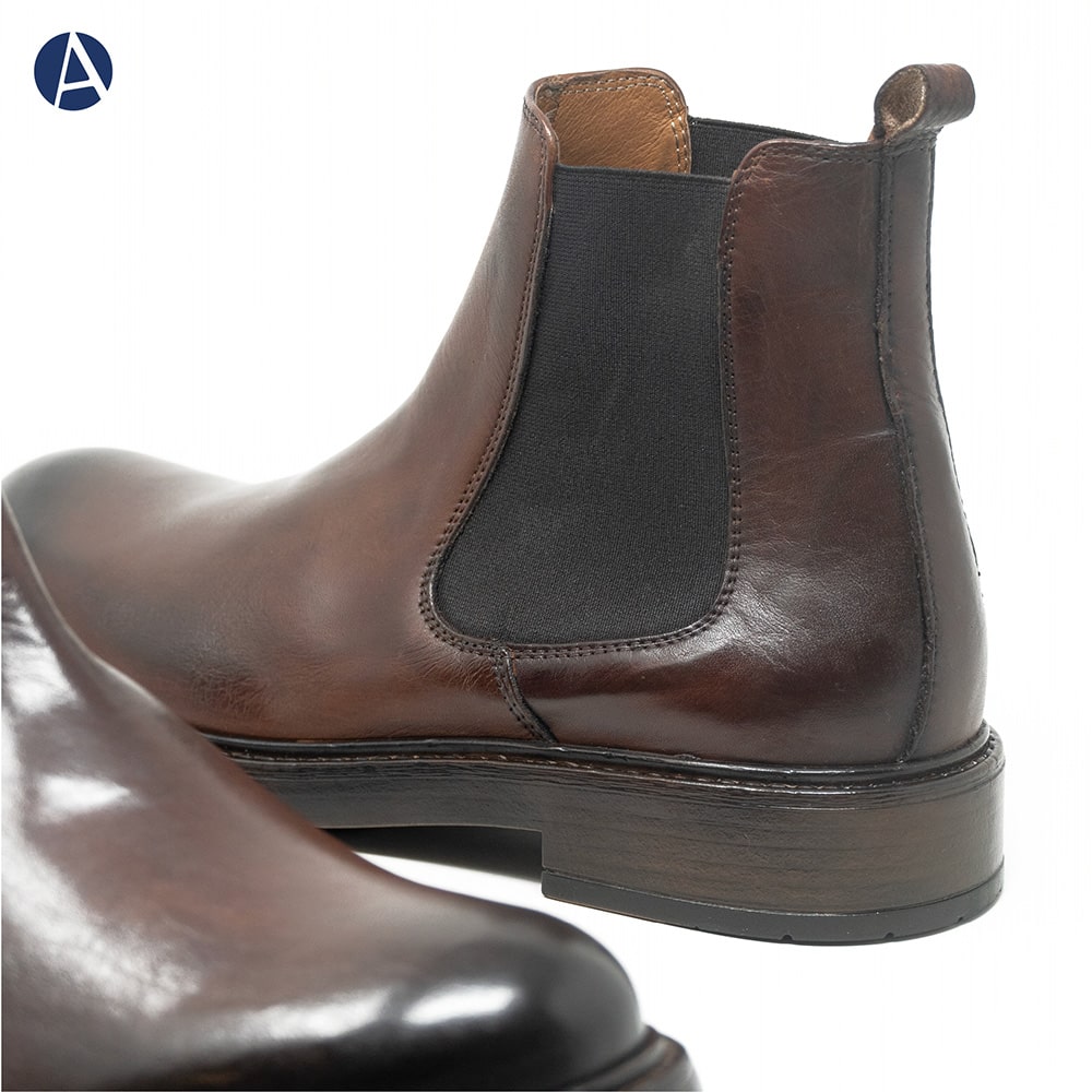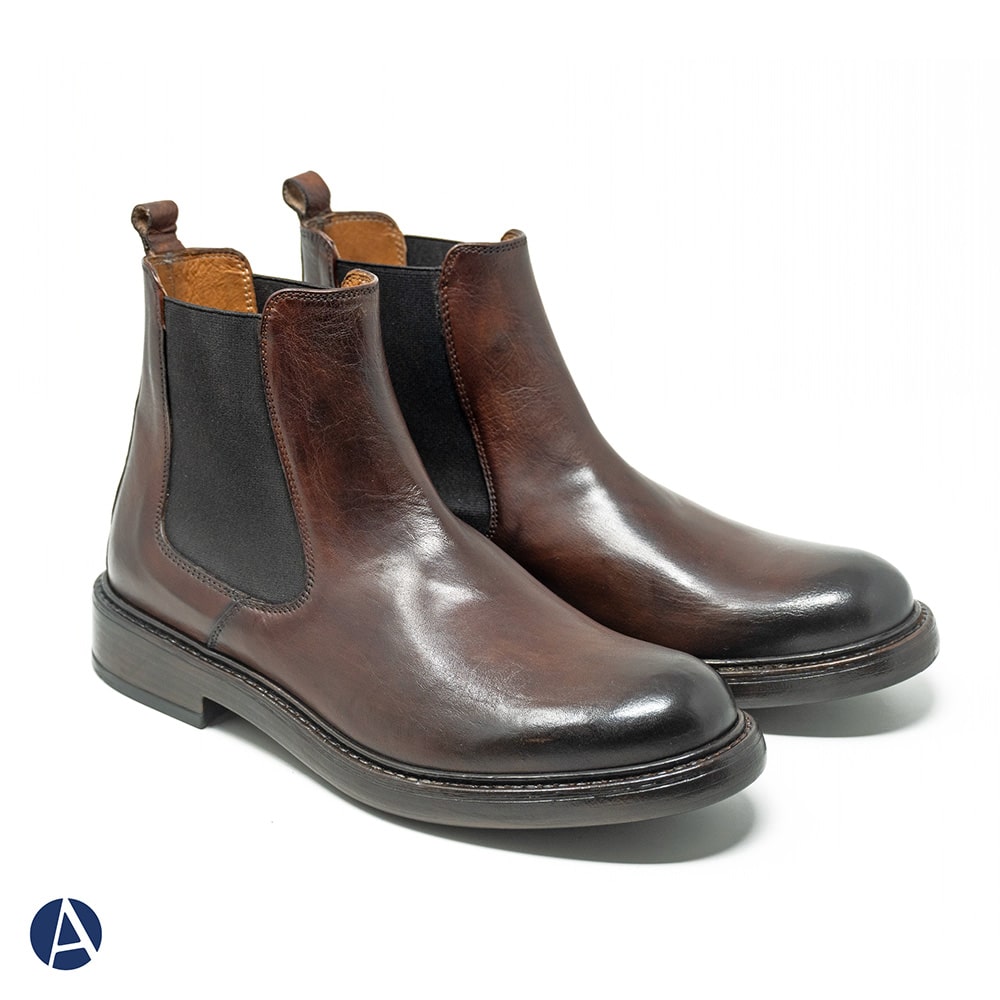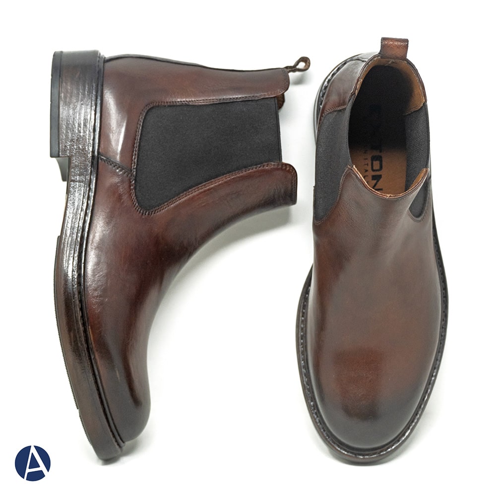 Stivaletto Beatles Exton uomo in pelle di colore castagno con elastico, leggerissimo. Fondo gomma. Calzatura elegante per uno stile senza tempo. Calzatura MADE IN ITALY