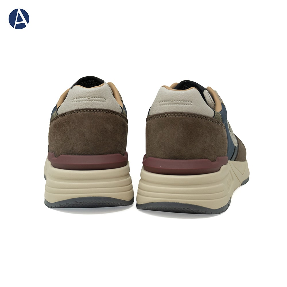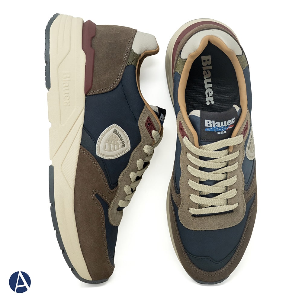Blauer sneakers uomo leggerissime, fondo running, tessuto tecnico e camoscio ocra con lacci e riporto taupe sul tallone. Perfette per chi ama calzature originali dallo stile ricercato.