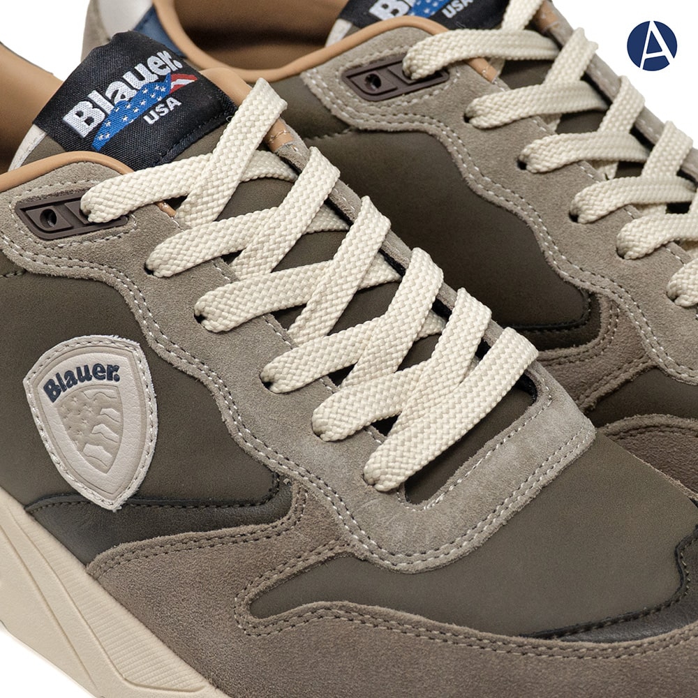 Blauer sneakers uomo F5BUCK01 NUB colore taupe con lacci in tinta e riporti sul tallone in pelle colore verde militare.