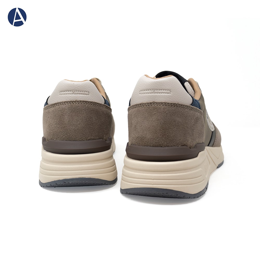 Blauer sneakers uomo leggerissime, fondo running, tessuto tecnico e camoscio ocra con lacci e riporto taupe sul tallone. Perfette per chi ama calzature originali dallo stile ricercato.