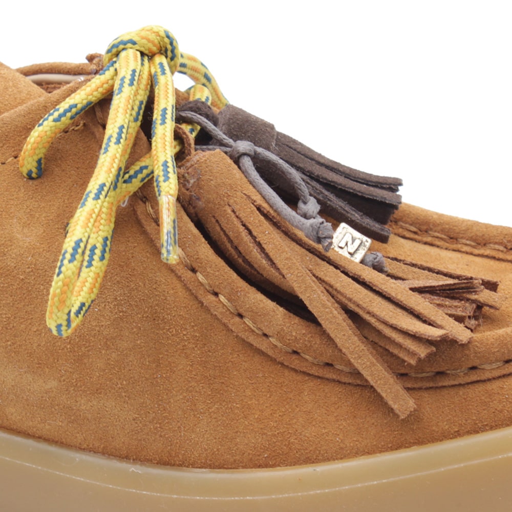 Sneakers alta donna MÉLINÉ in pelle scamosciata di colore cuoio con riporti in pelle a contrasto, lacci in lana e zip laterale. Calzatura Made in Italy, comoda, dallo stile originale.